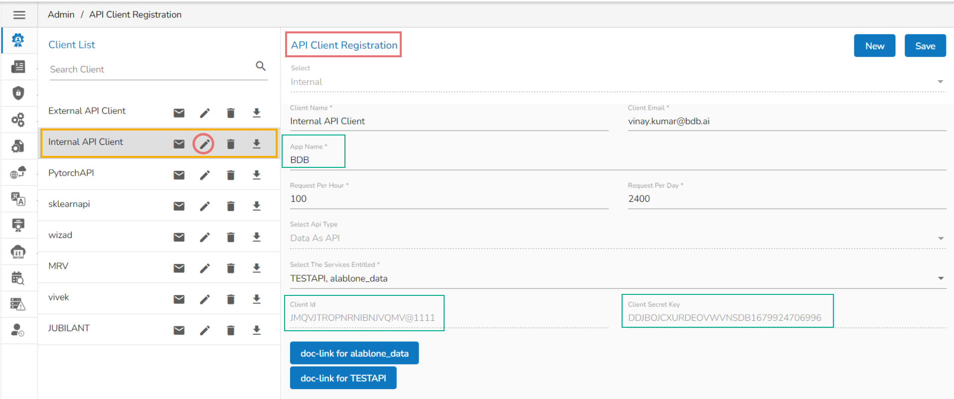 Click on the Edit option for the saved External API Client.