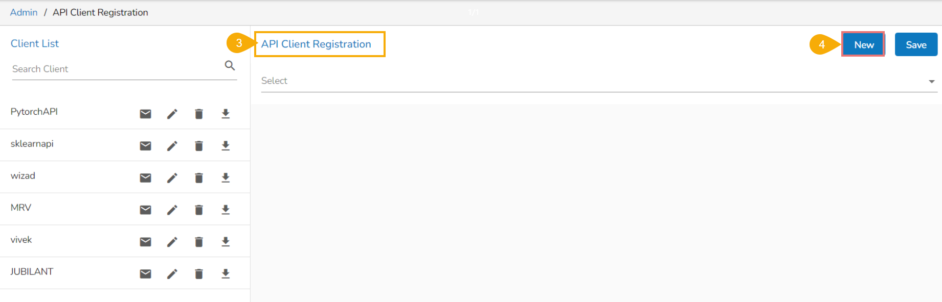 Click the New option to create new client registration.