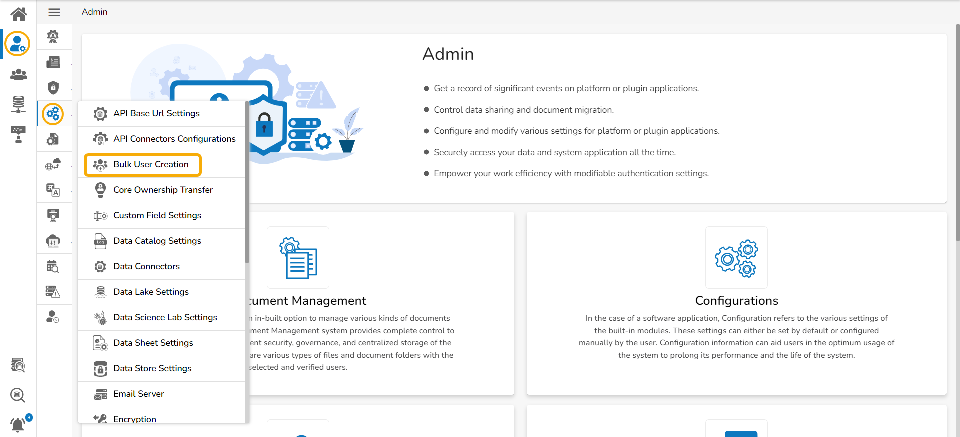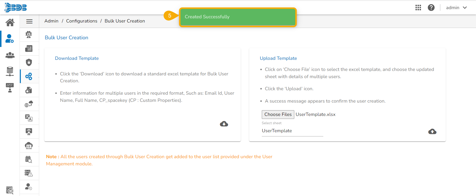 Click the Bulk Users Creation option from the Configurations.