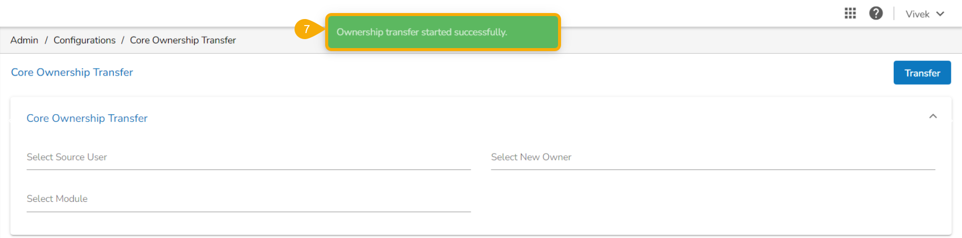 The Core Ownership Transfer Settings allows to transfer all the components of Data Center, Designer, Security, Home, and Pipeline modules from one user to another user.