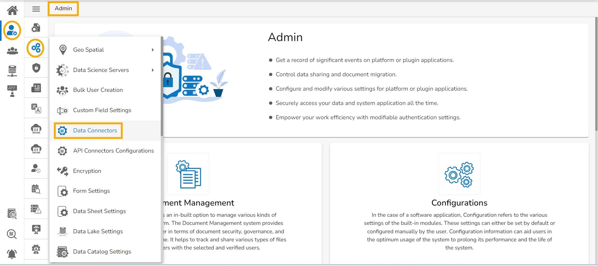 This option allows the users to configure the required server settings for Data Connectors.