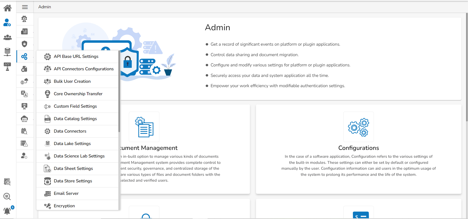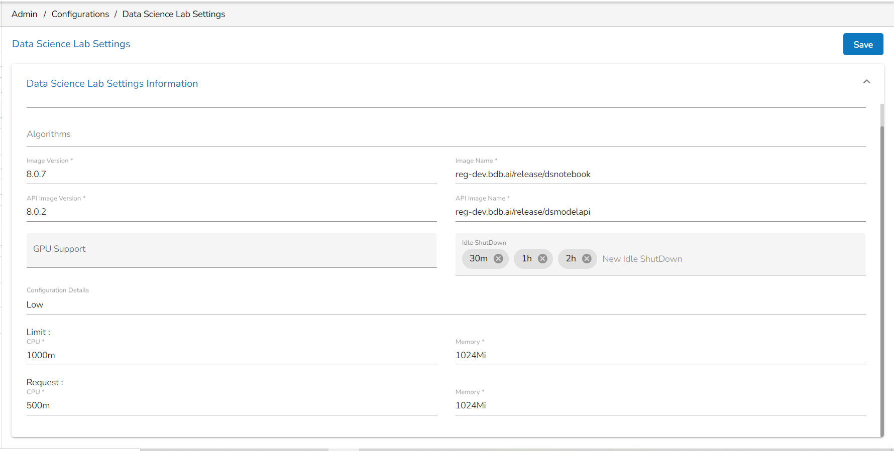 Click the Data Science Lab Settings option from Configurations list in the Admin Module.