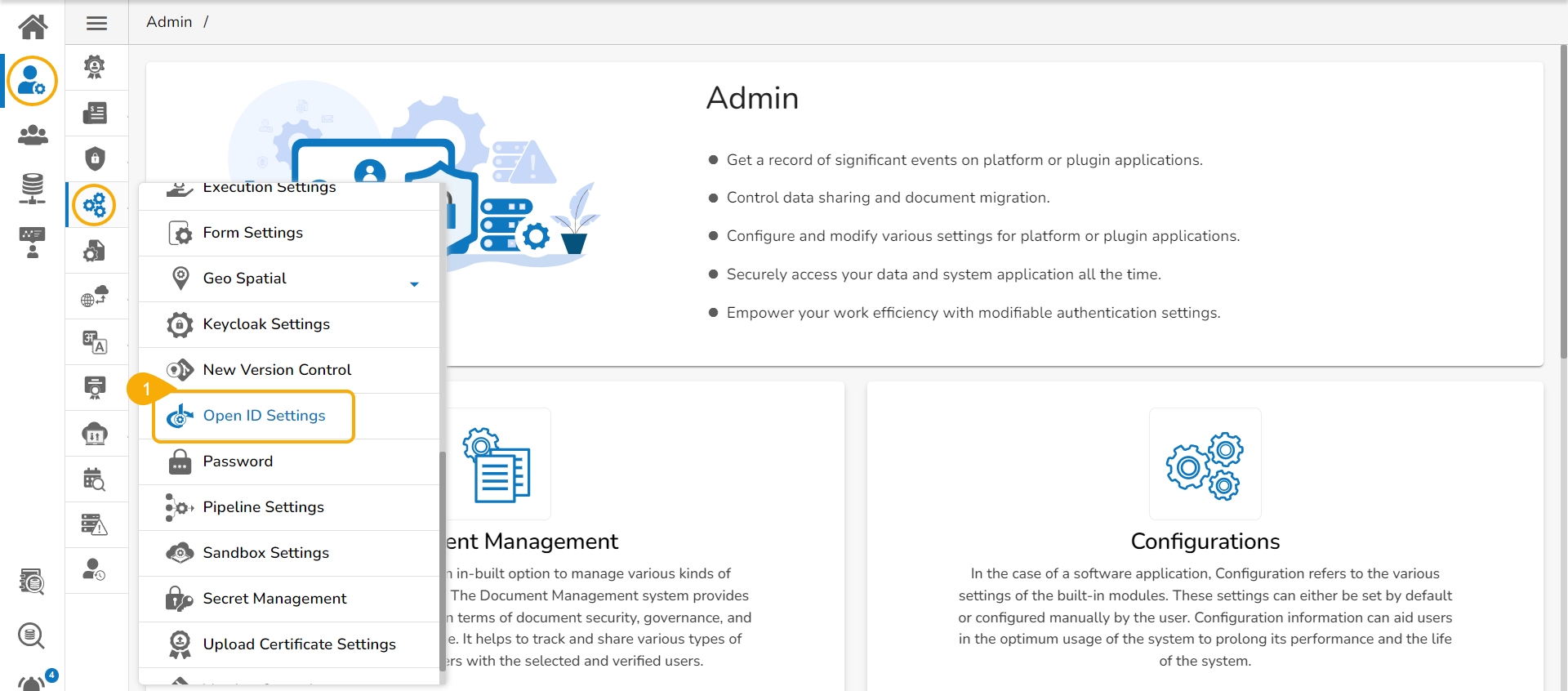 Click the Open ID Settings option from the Configurations options of the admin menu.