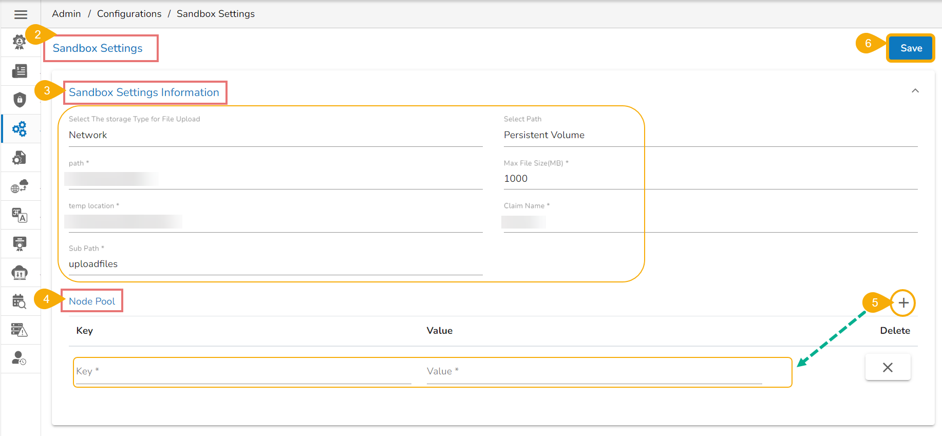 Provide the following mandatory information for the Sandbox Settings: