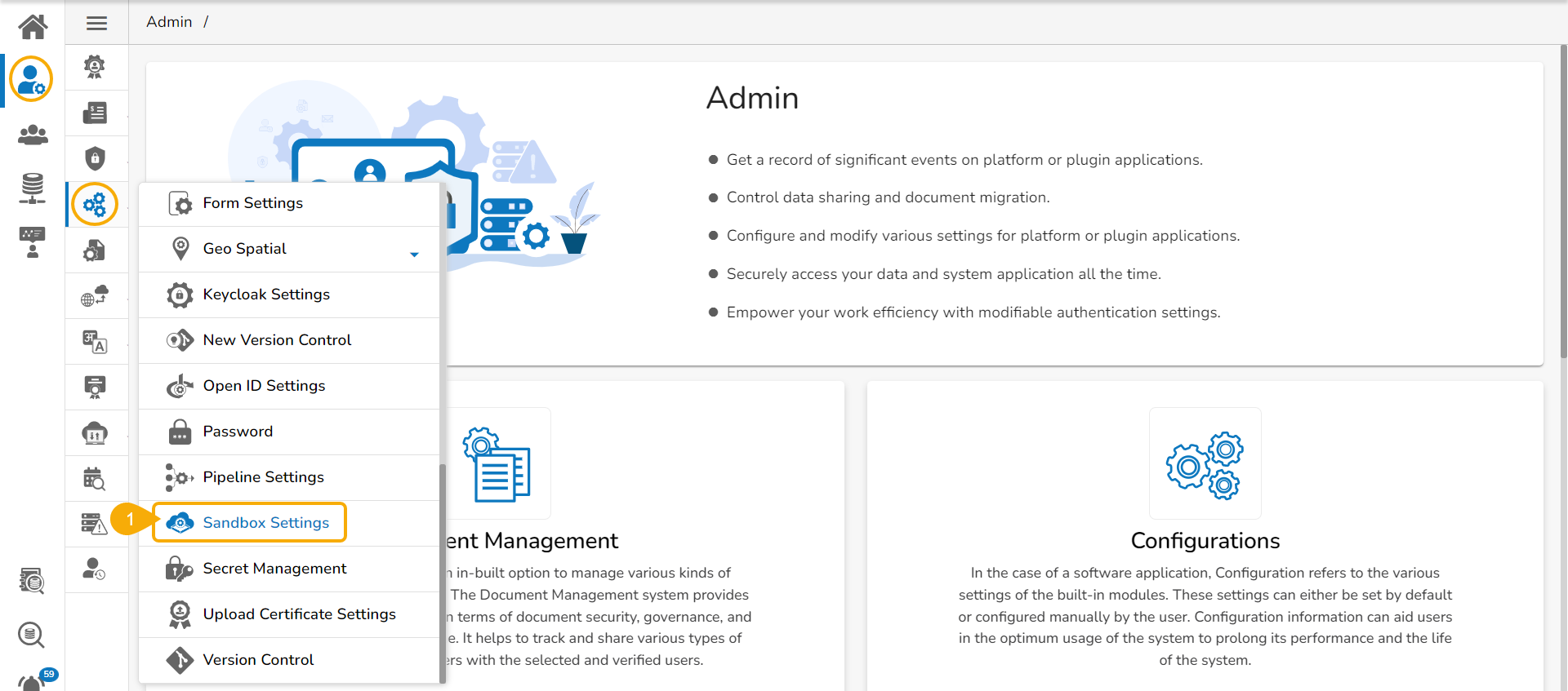 Click the Sandbox Settings option from the list of configuration and Settings option.