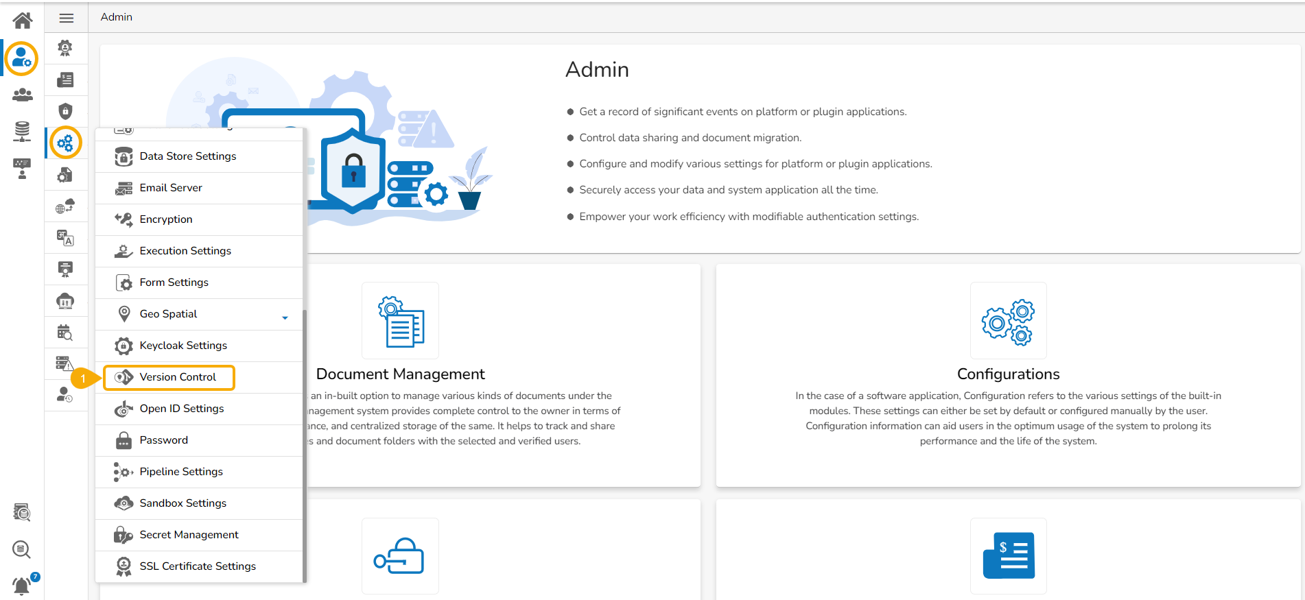 Select the New Version Control option from the Configurations under the Admin module.