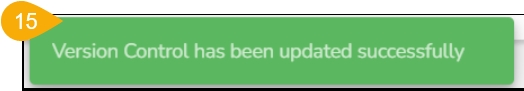 A configuration message appears and the configuration for the New Version Control gets saved.