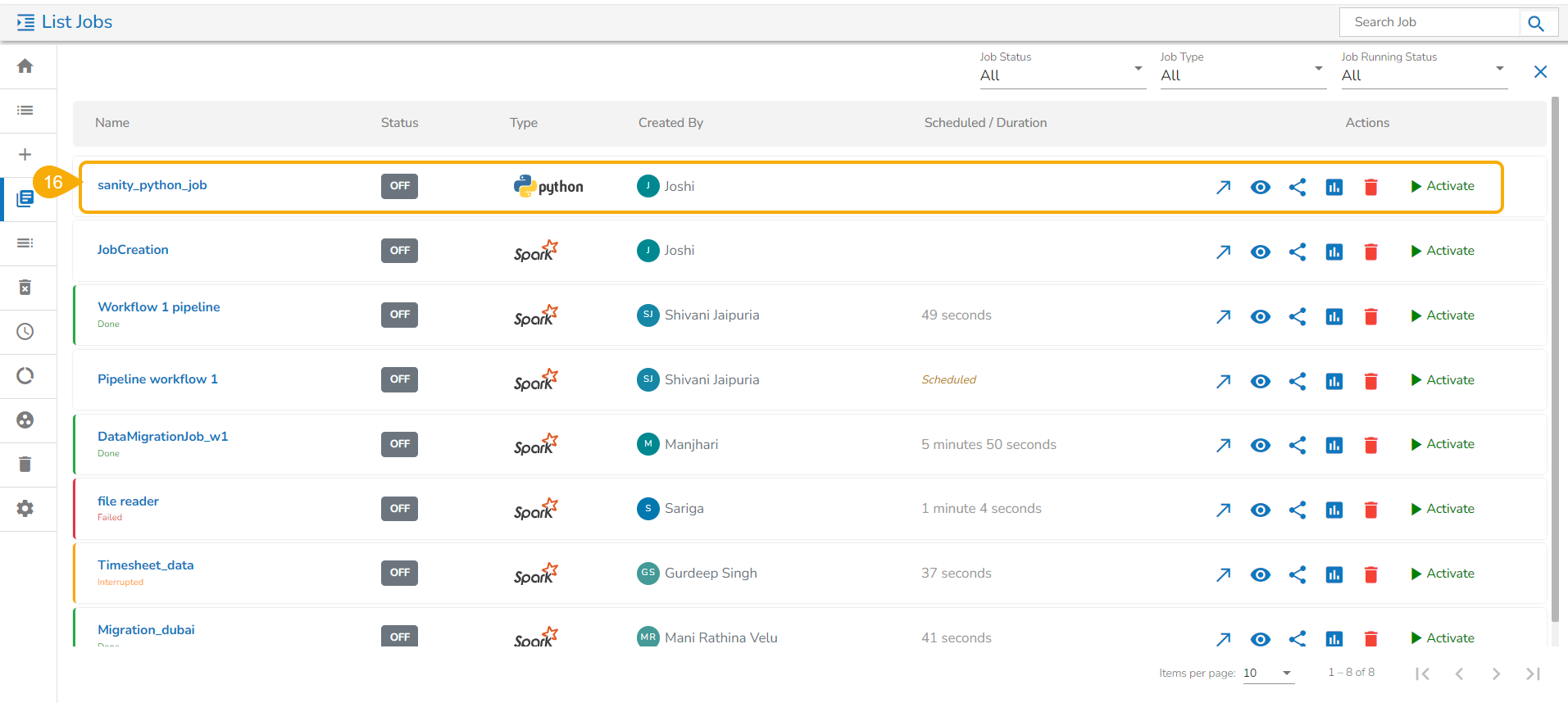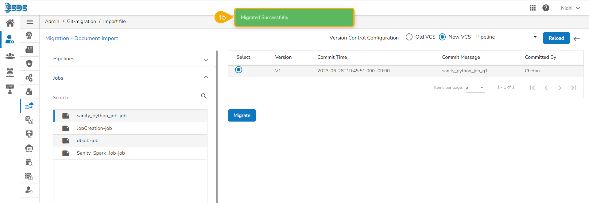 The migrated job can be seen on the List Jobs page under the Data Pipeline module.