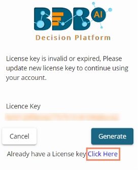 Choose the Click Here option, if you have already received the License key from the BDB support team.