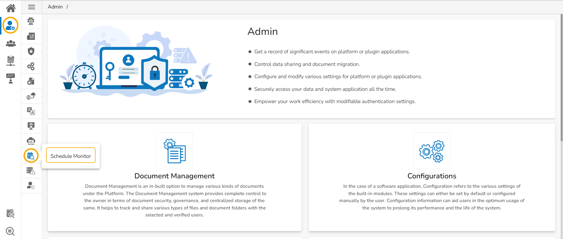 Click the Schedule Monitor option from the list of admin options.