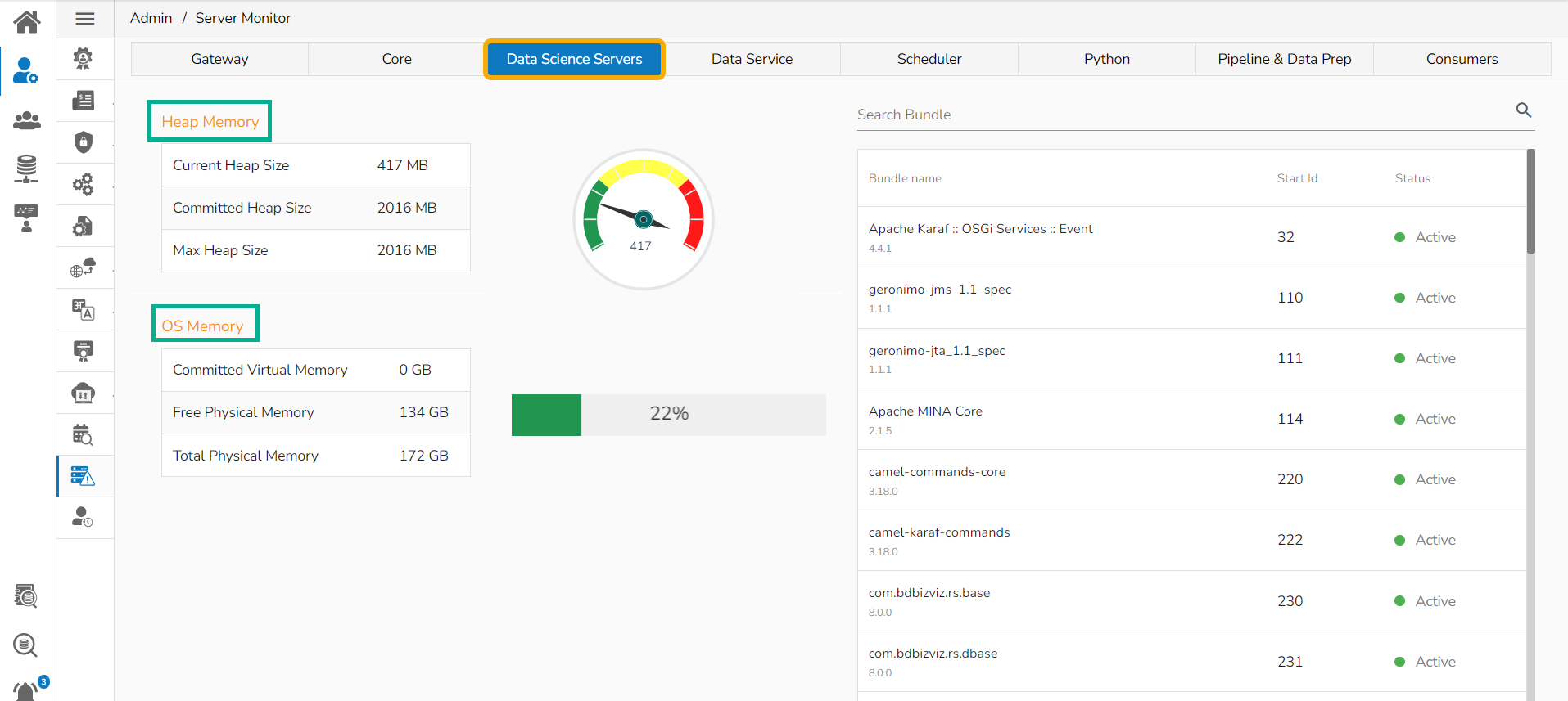 Select a node to display the node-specific server details. E.g., the Data Science Servers node is selected in the below-given details: