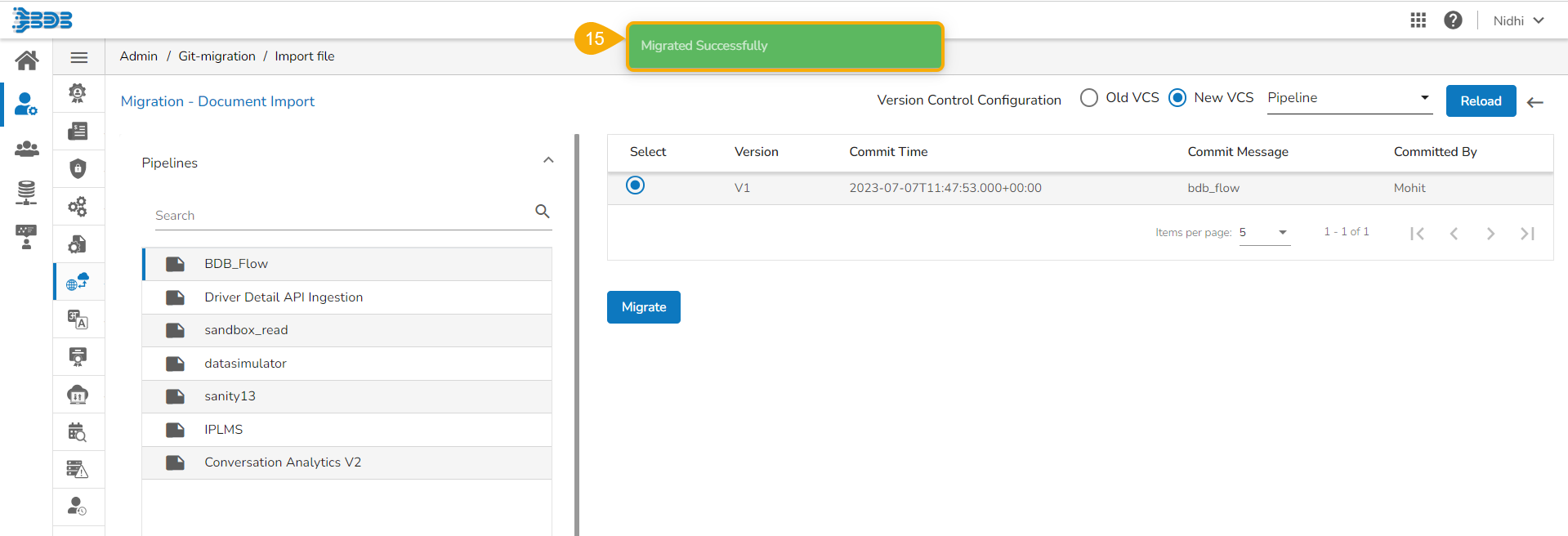 The migrated pipeline can be seen on the List Pipelines page under the Data Pipeline module.
