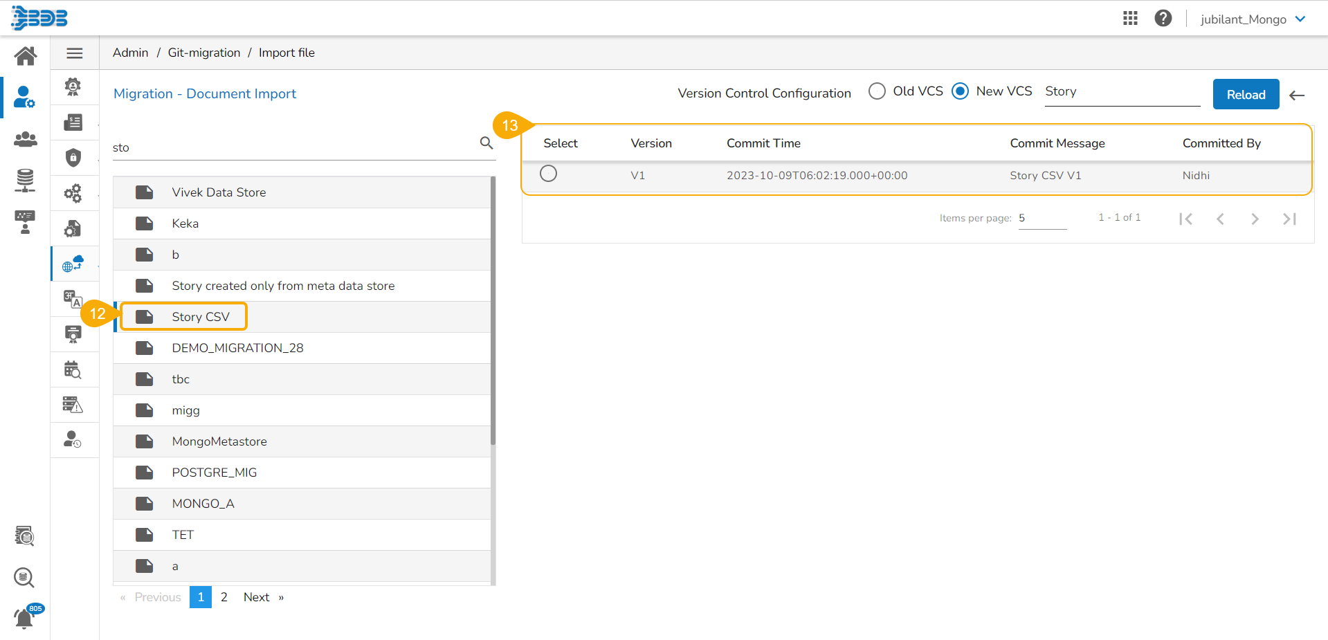 * The user gets redirected to the ***Migration - Story Document Export*** page.