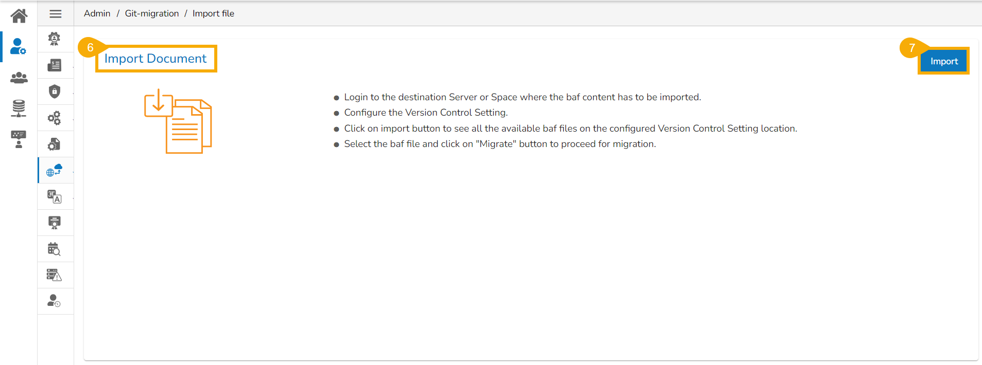* The ***Migration - Document Import*** page appears.
