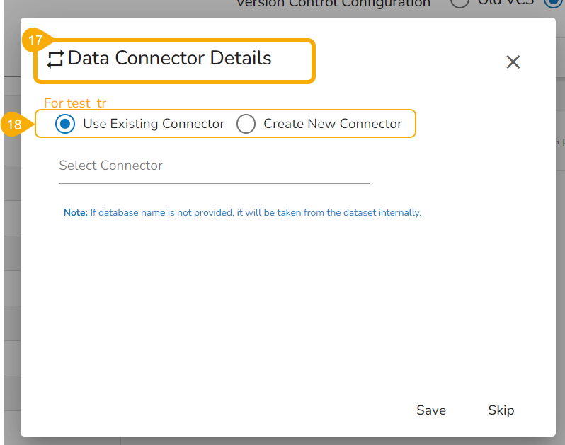 Choose the Use an Existing Connector option -> Select a data connector from the drop-down menu -> Click the Save option.