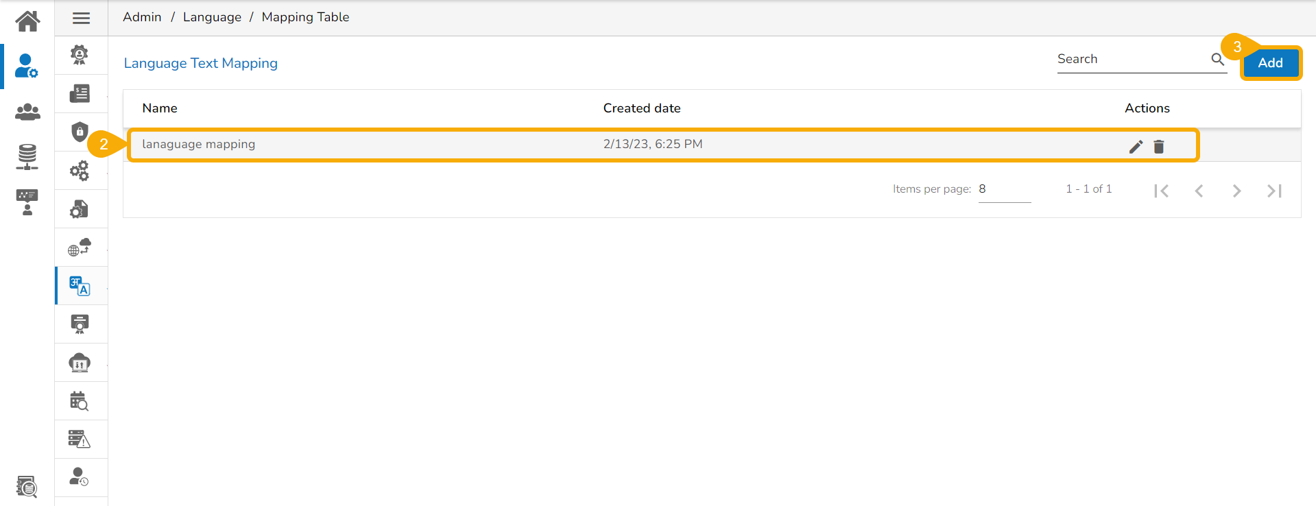 * Click the ***Mapping Table*** option using the ***Language Mapping*** admin option.