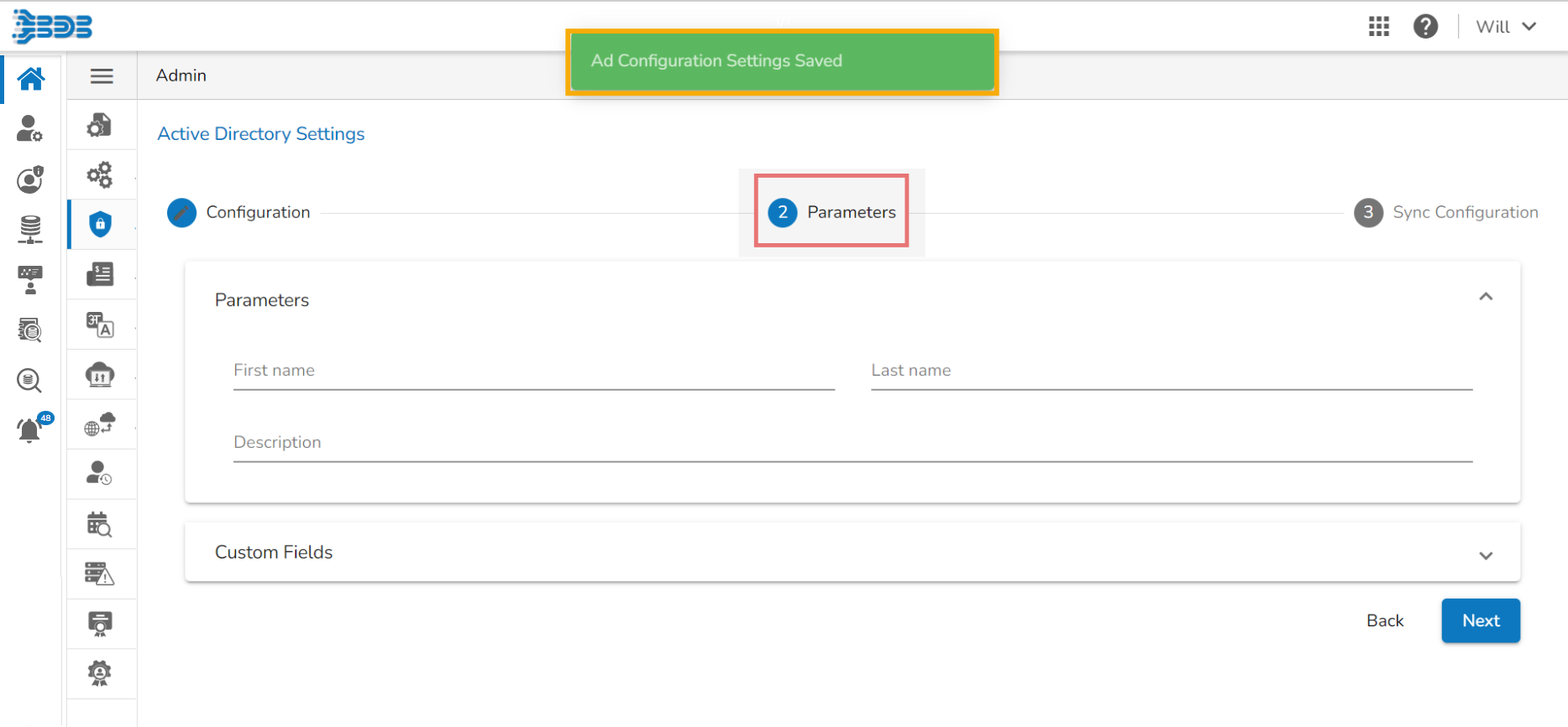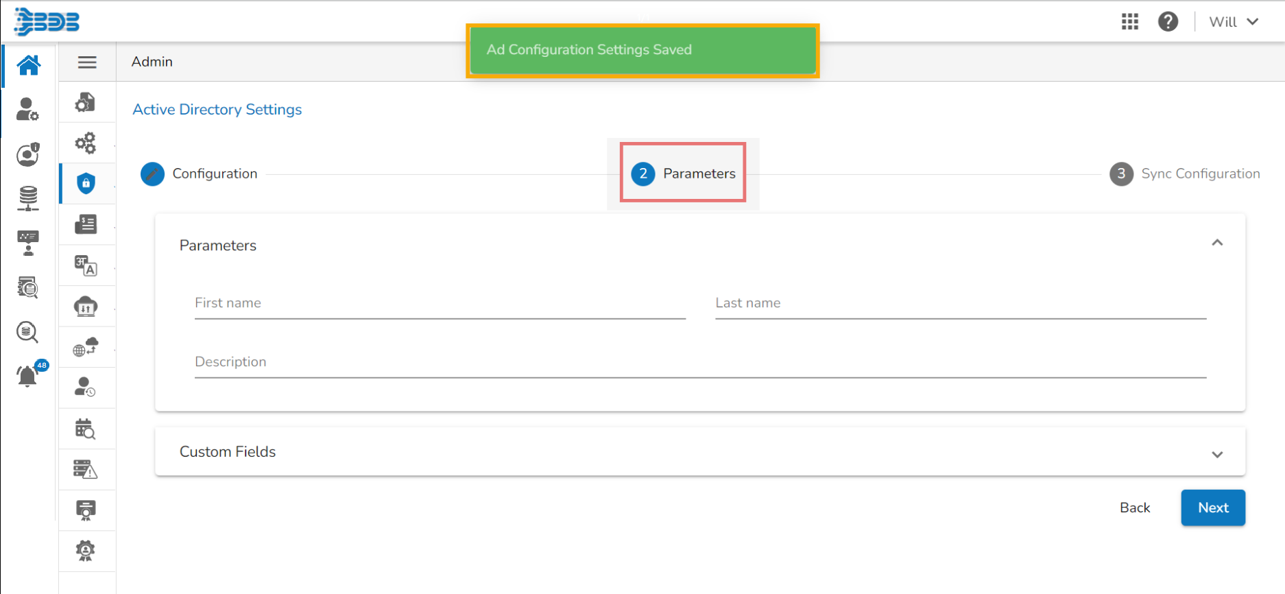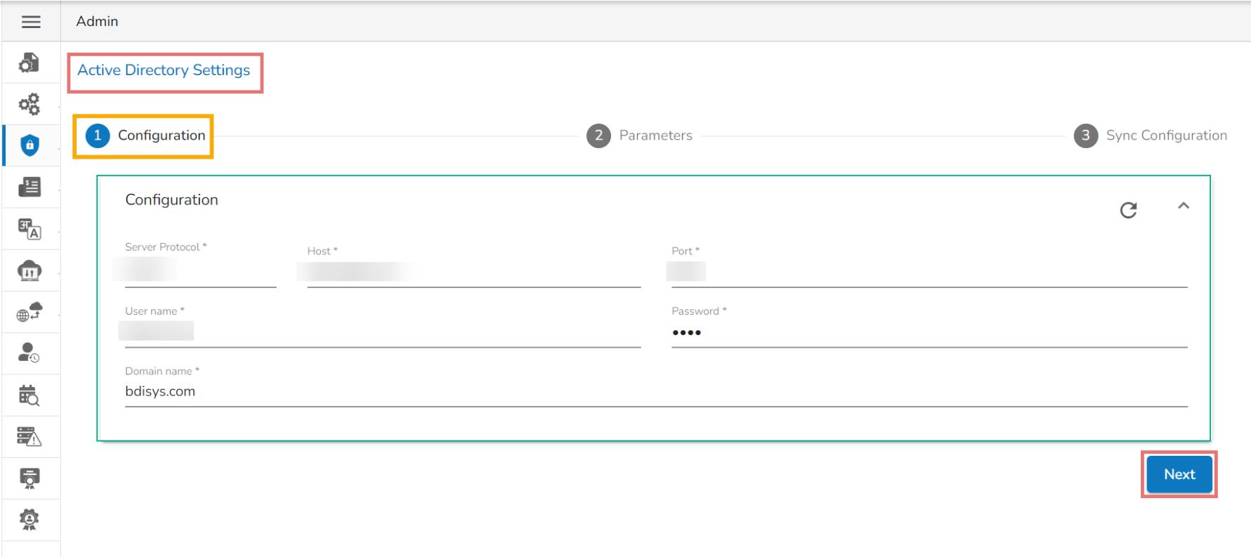 The Configuration tab for the Active Directory Settings opens by default.