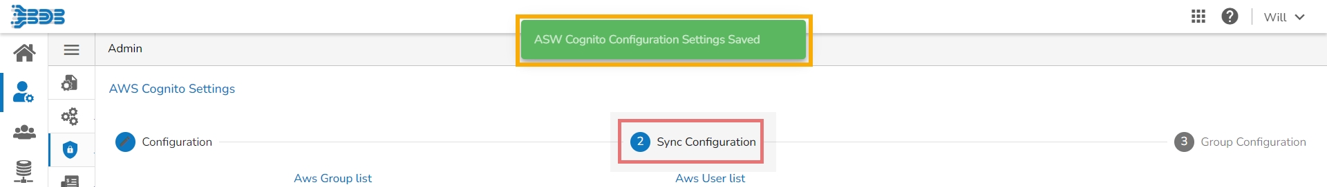 The AWS Cognito Settings page opens displaying the Configuration tab.