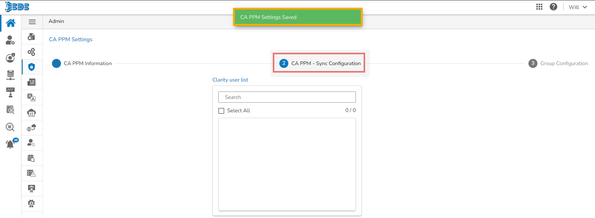A success message appears, and the administrator gets directed to the CA PPM Sync Configuration tab.