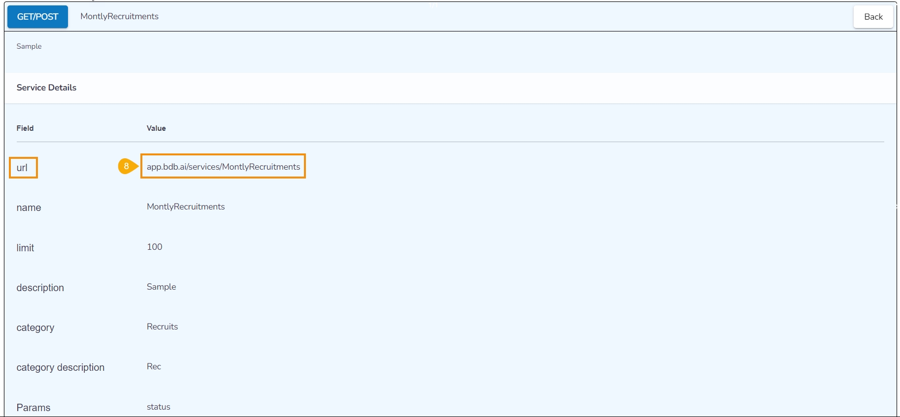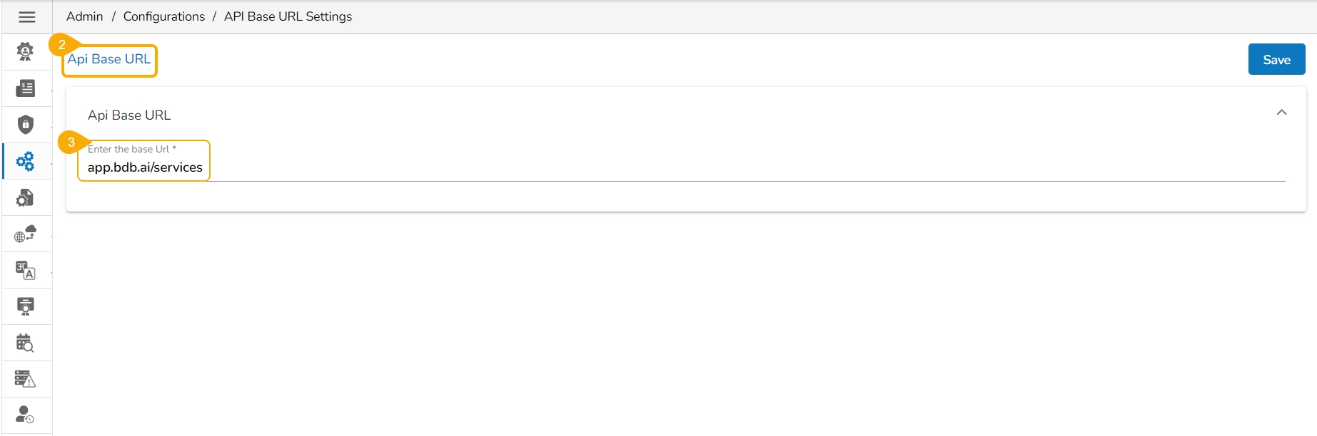 E.g., the given image displays the app.bdb.ai/services as configured base URL.