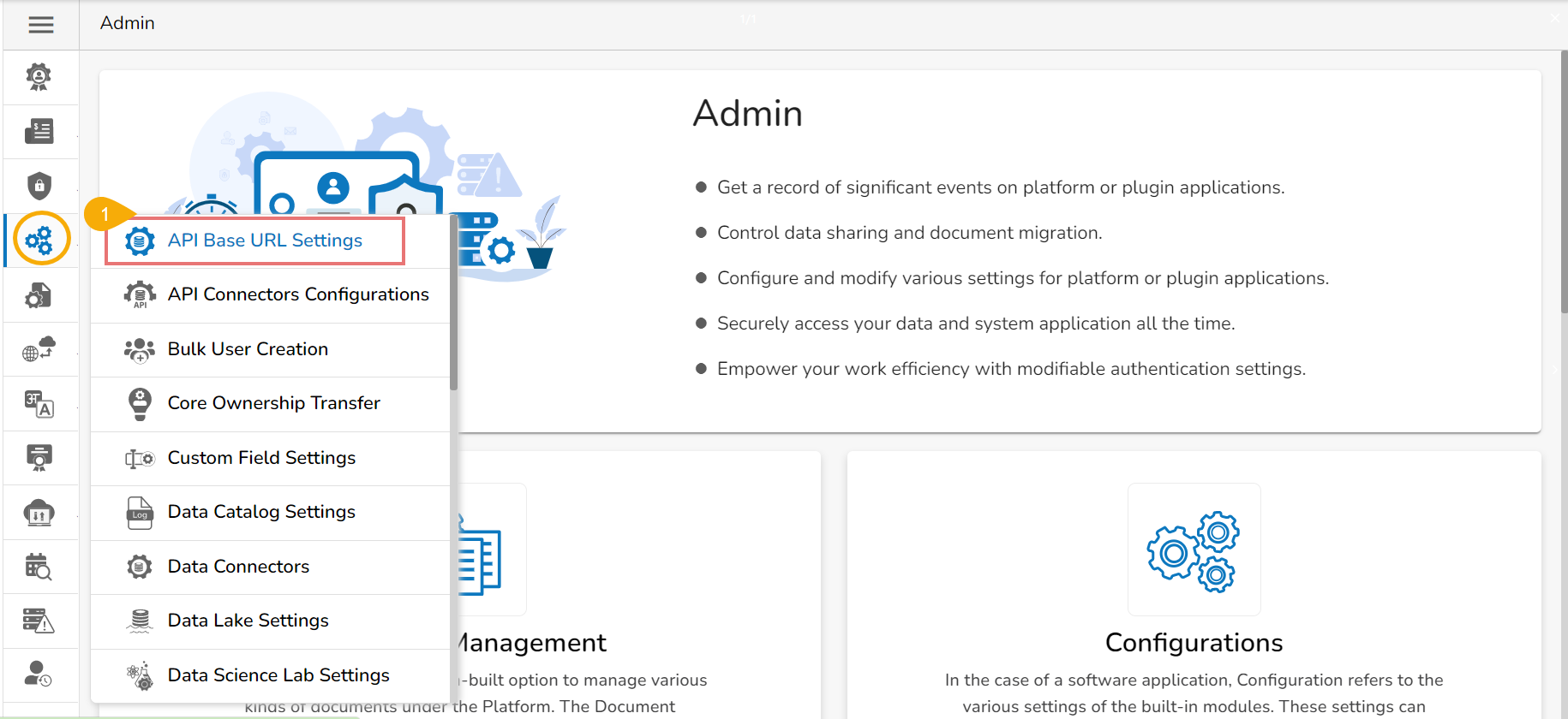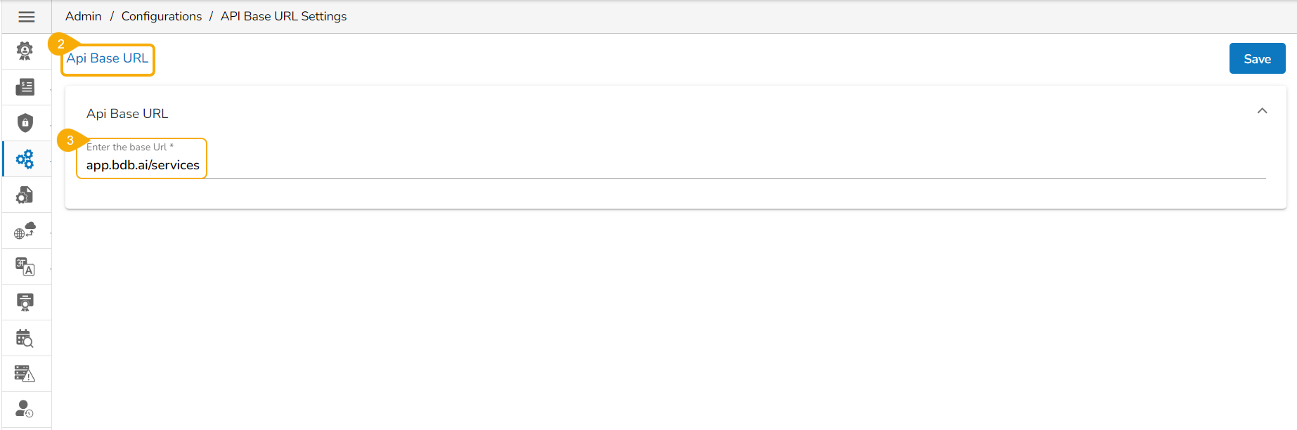 API Base URL settings option allows the user to share the base URLs for the various APIs that can be shared across to call the API service.