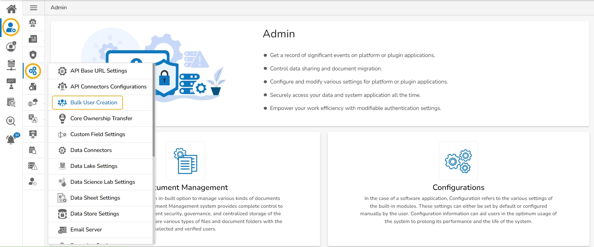 The current option provided under the Configuration and Settings tab helps the administrator to create multiple users using a standard template.