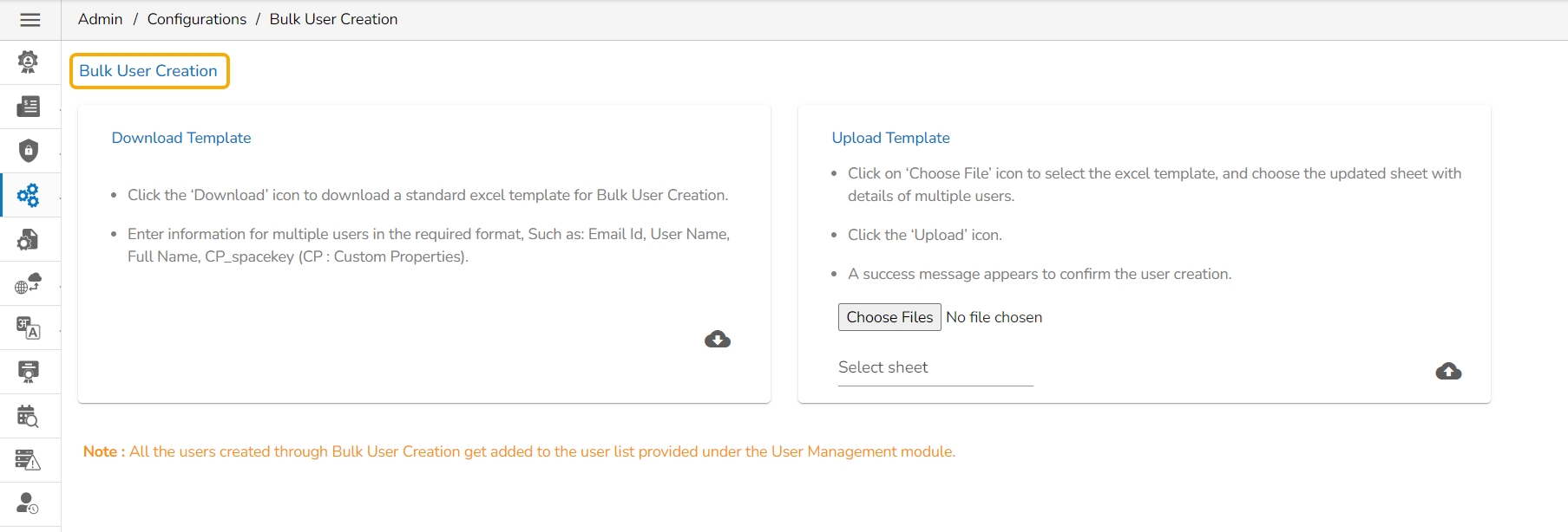 Navigate to the Upload Template option of the Bulk User Creation page.