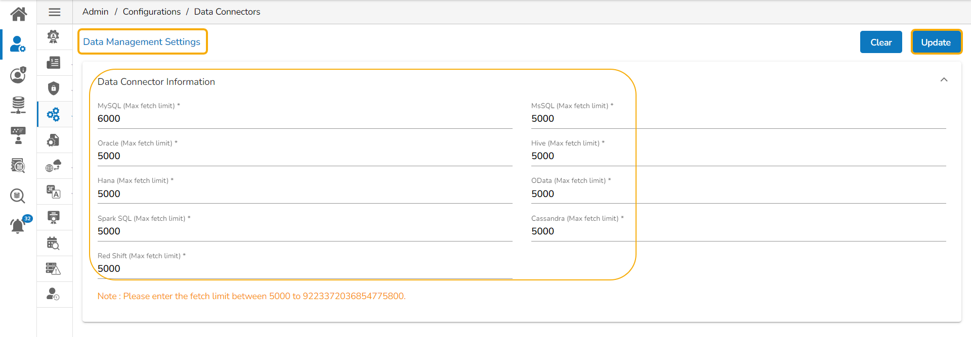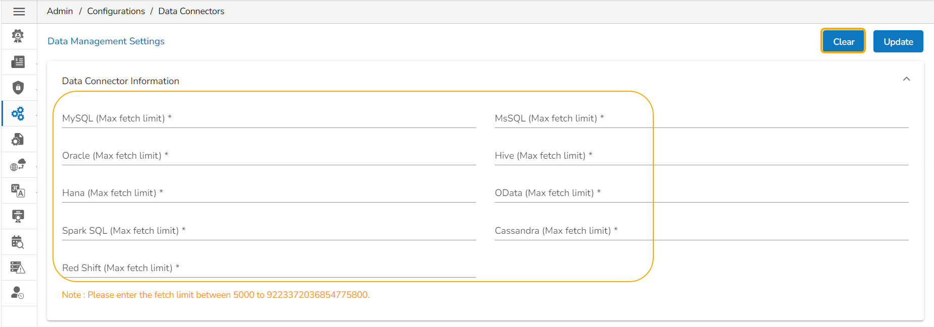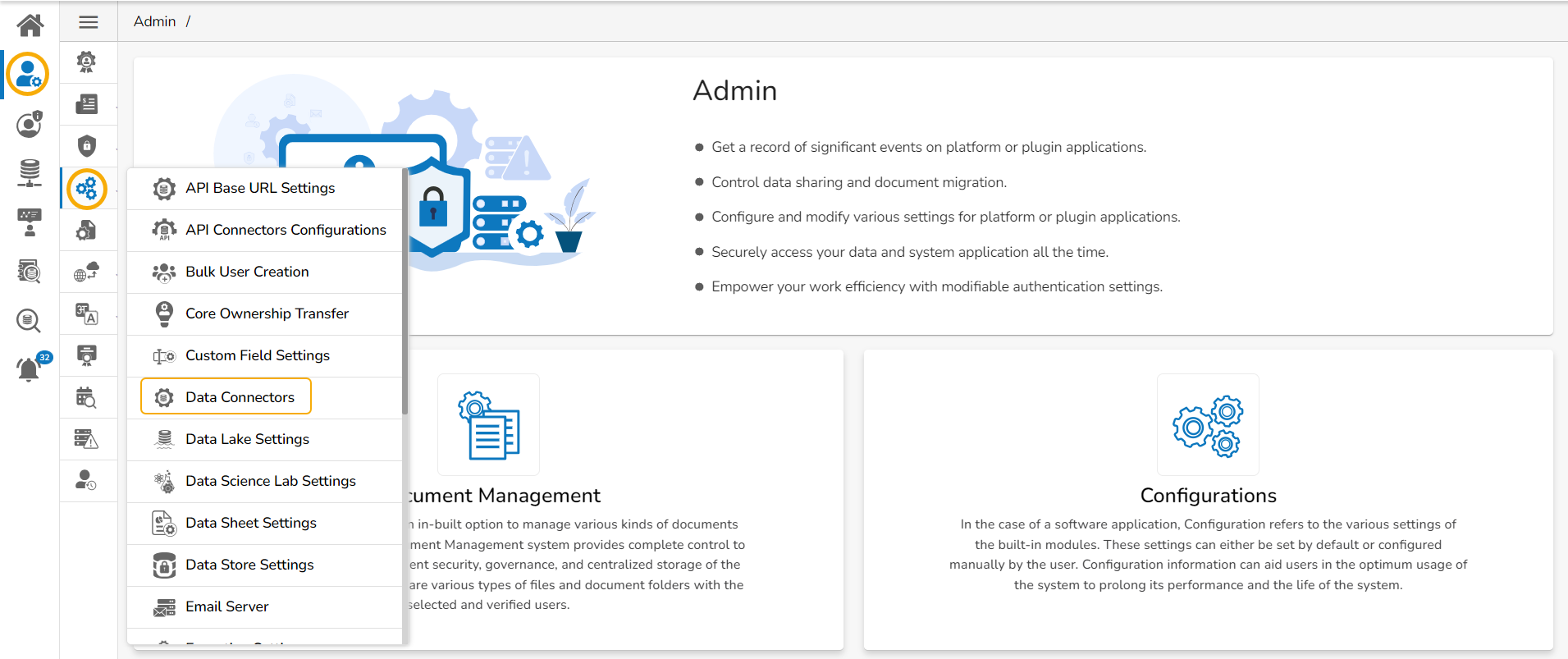 This option allows the users to configure the required server settings for Data Connectors.