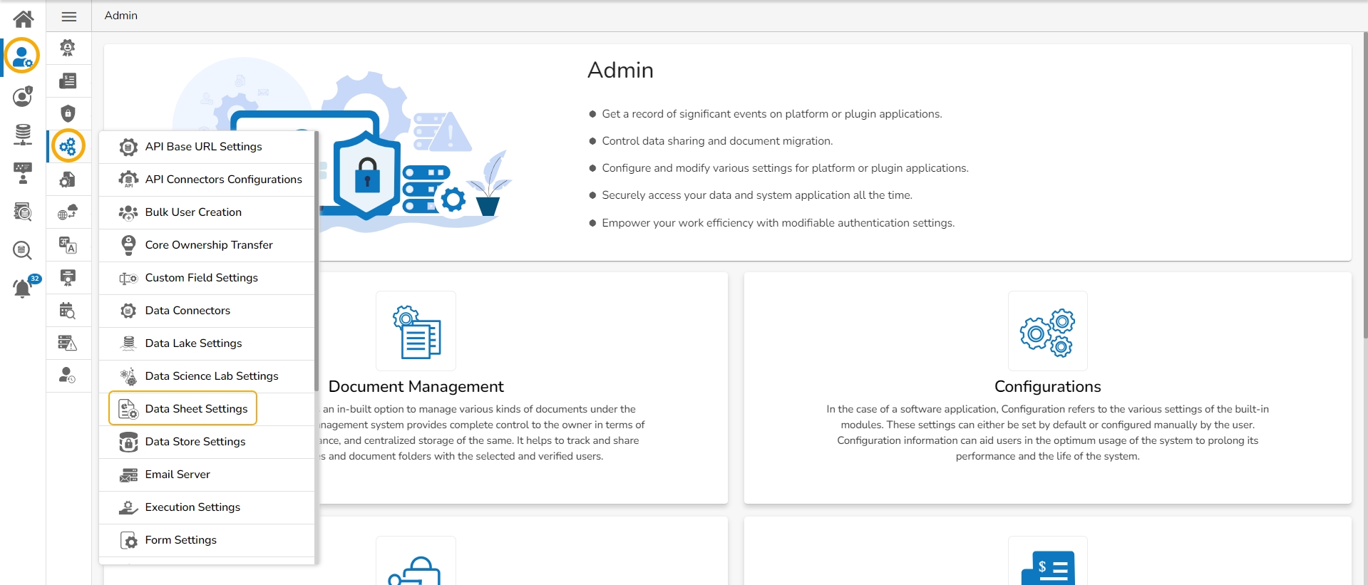 Click the Data Sheet Settings from the list of Configurations under the Admin module.