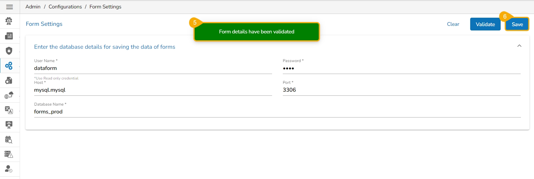 Click the Validate option to validate the Form Settings.
