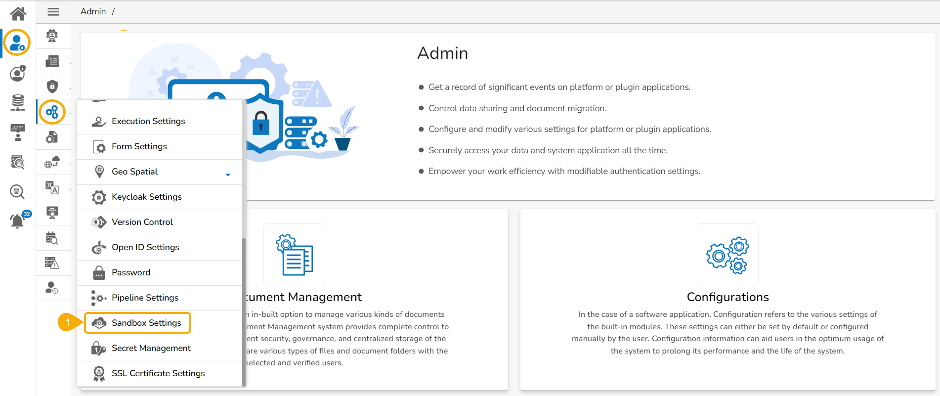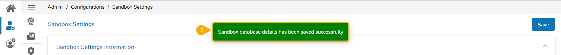 A notification message ensures that the provided configuration for the Sandbox Settings has been saved.