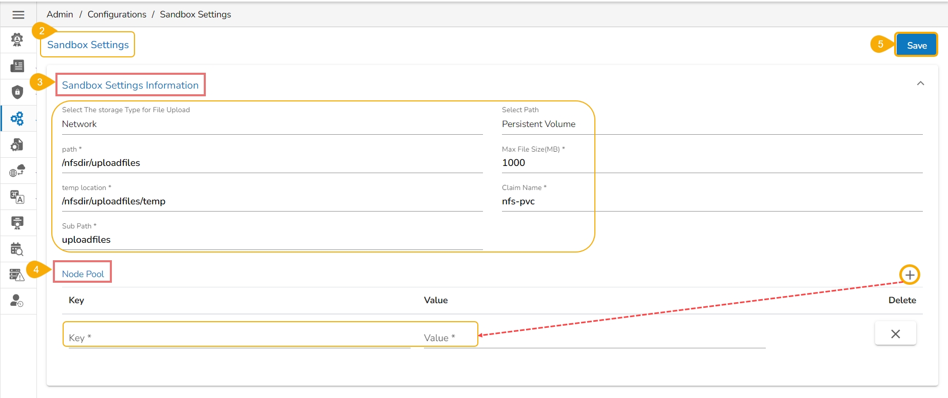 Node Pool: The user can add the Key and Value using the Add new field