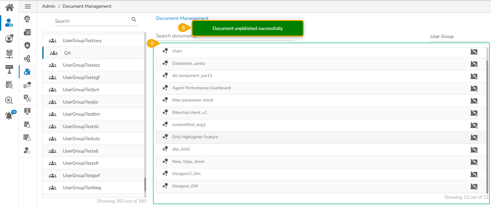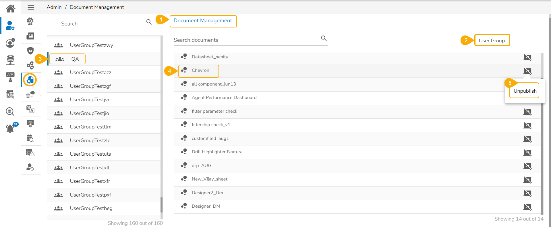 Select the User Group option to view the document list for the available user groups.