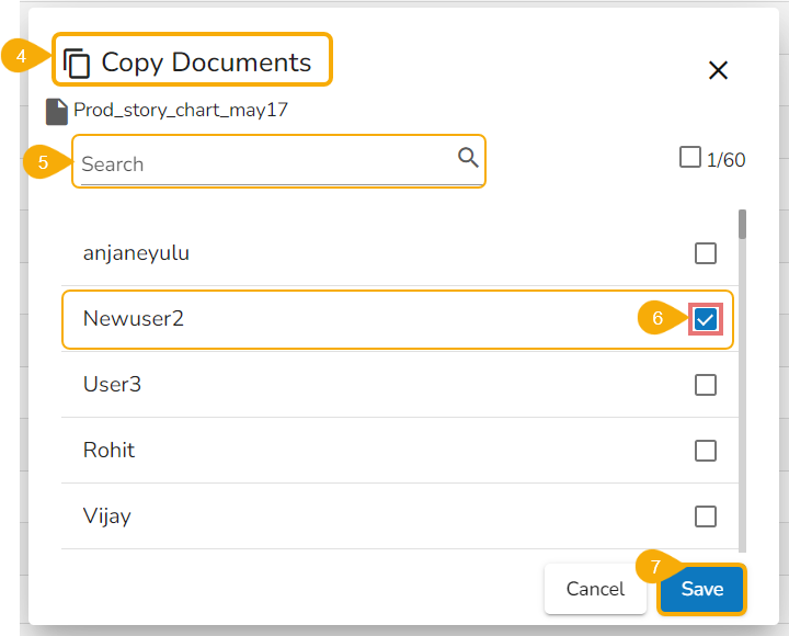The document gets copied to the selected user’s account.