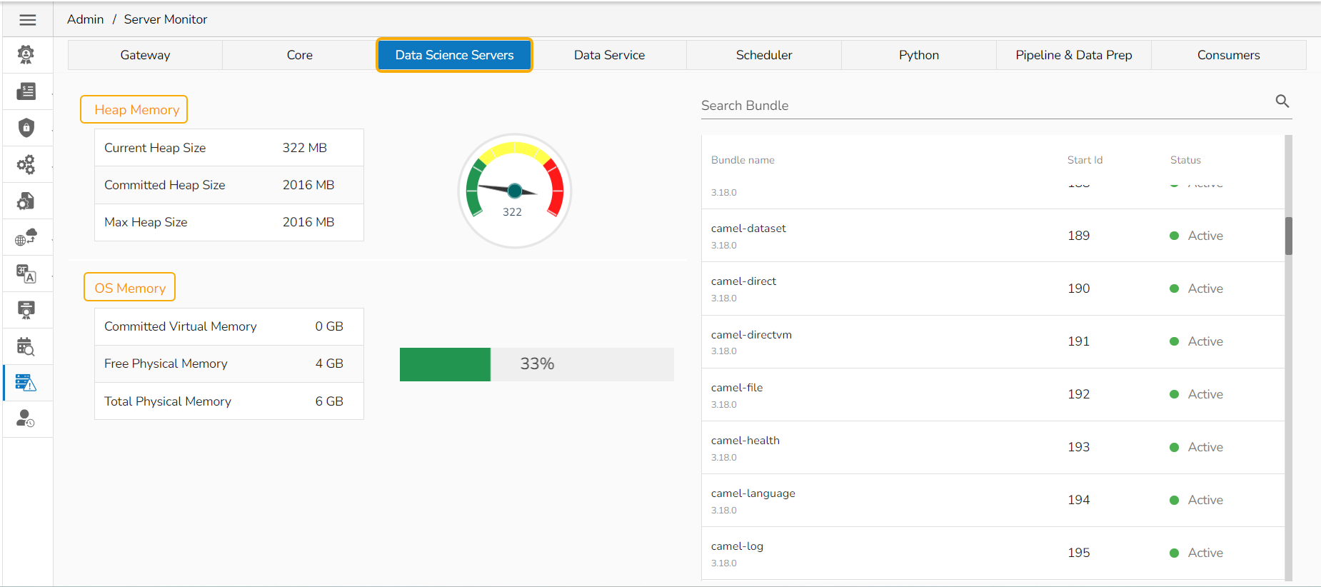 Select a node to display the node-specific server details. E.g., the Data Science Servers node is selected in the below-given details: