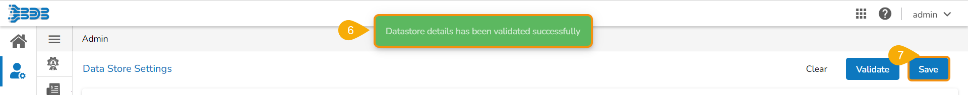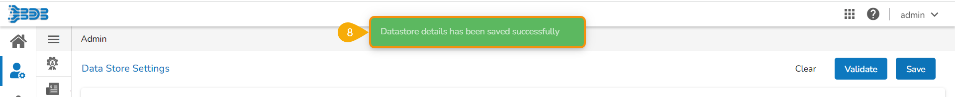 * A notification message appears to confirm that the Data Store configuration for Mongo DB has been saved.