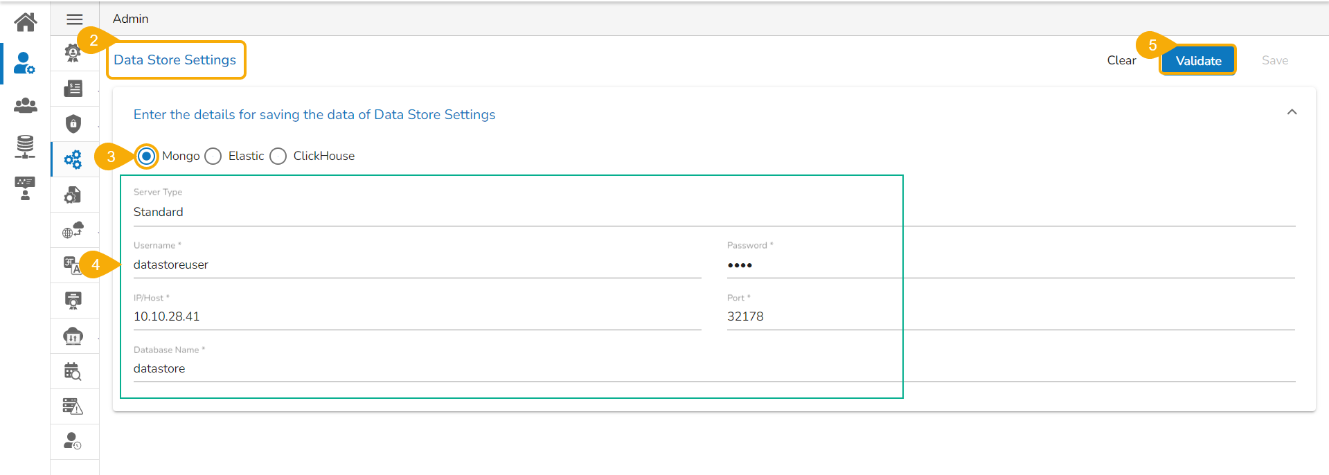 ## **Configuration Data Store with Mongo as selected DB**