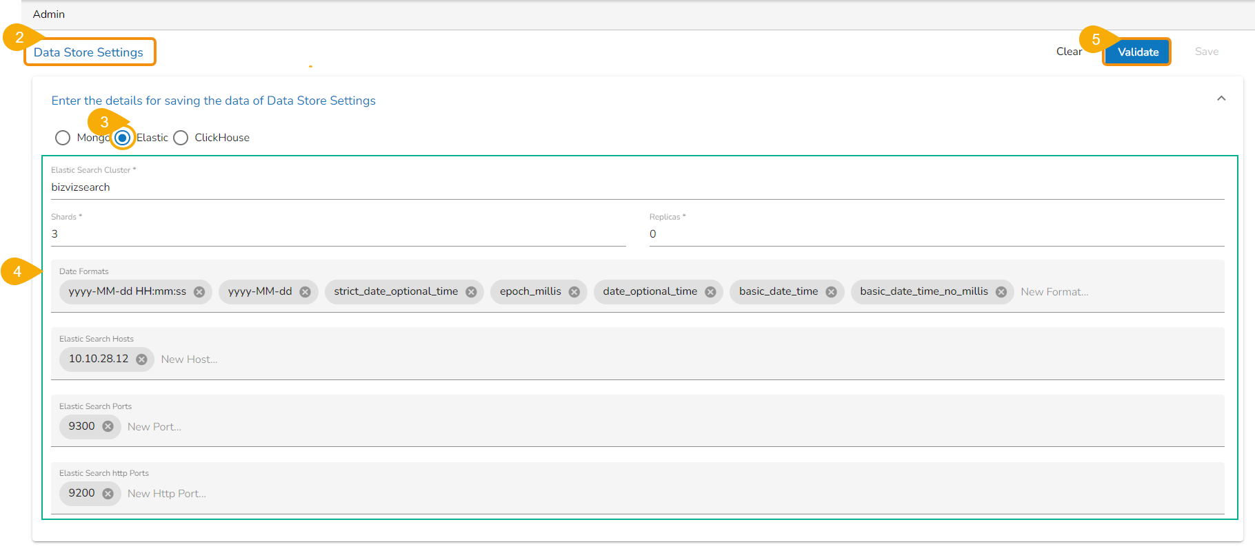 ## **Configuring Data Store with Elastic as selected DB**