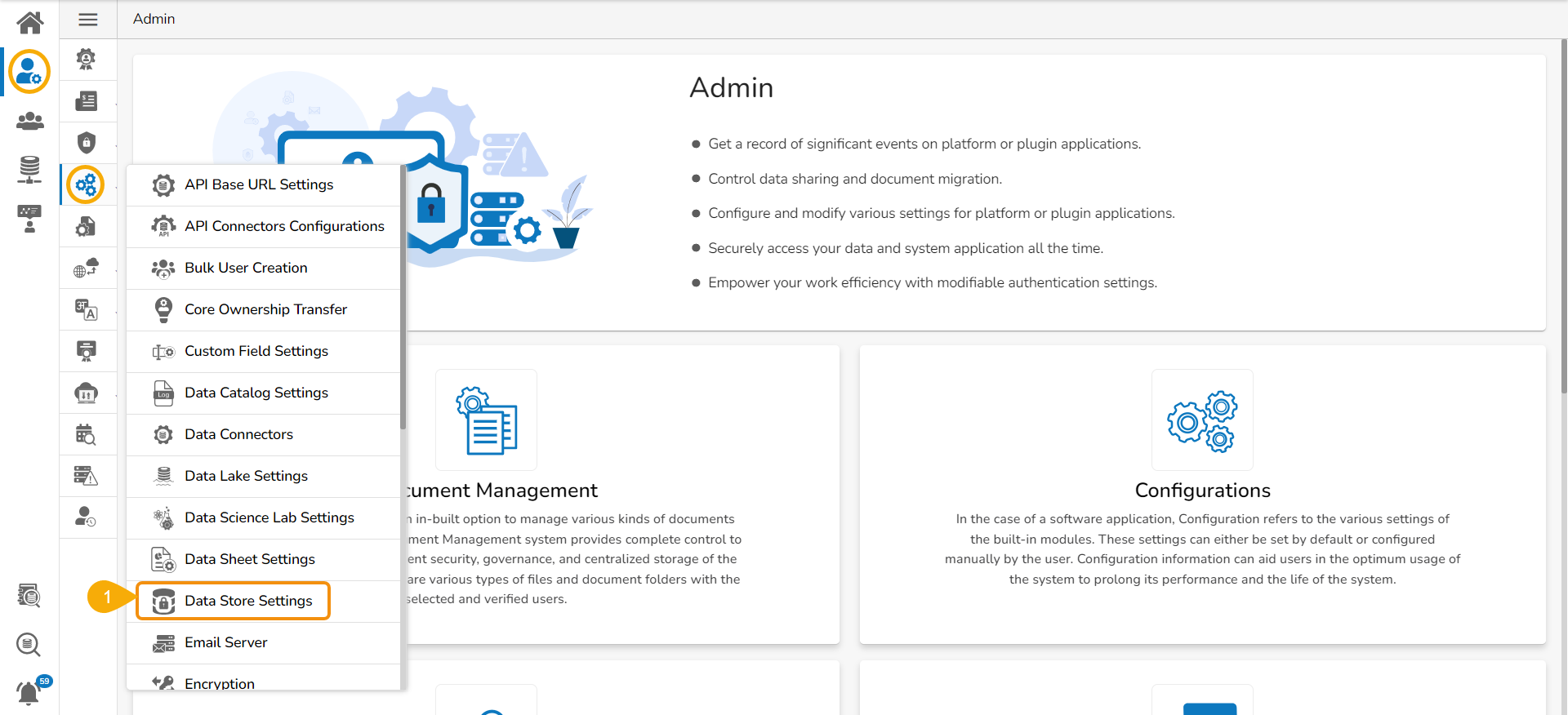 * Click the ***Data Store Settings*** option from the list of Configuration and Settings option.​