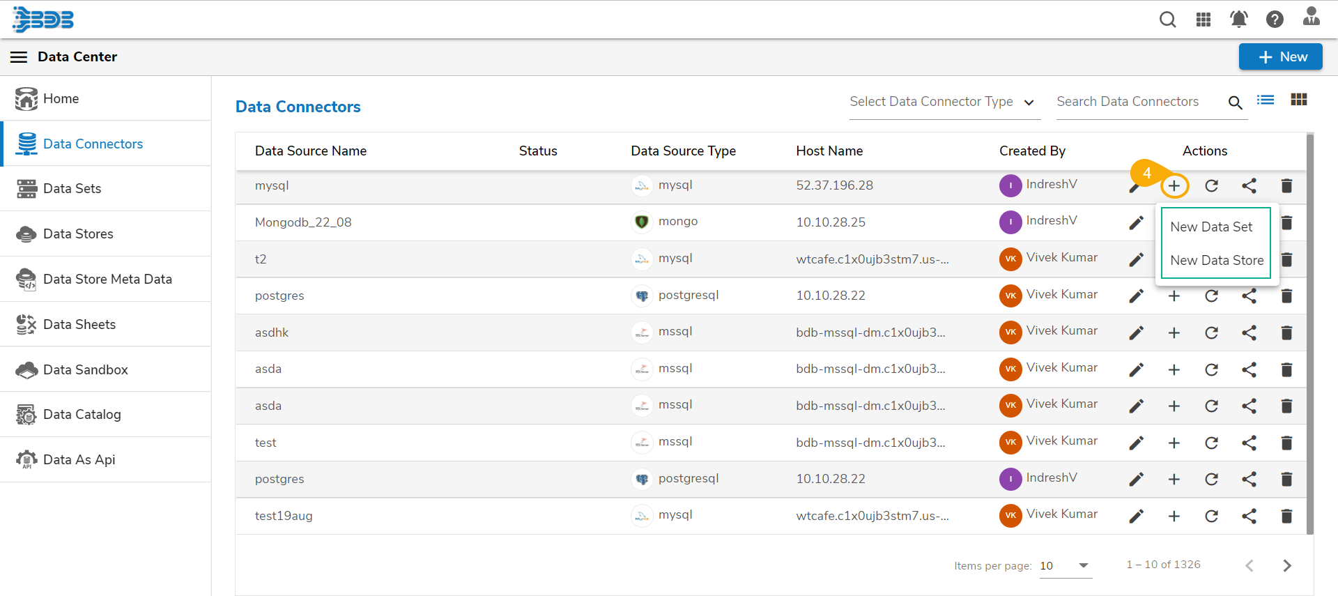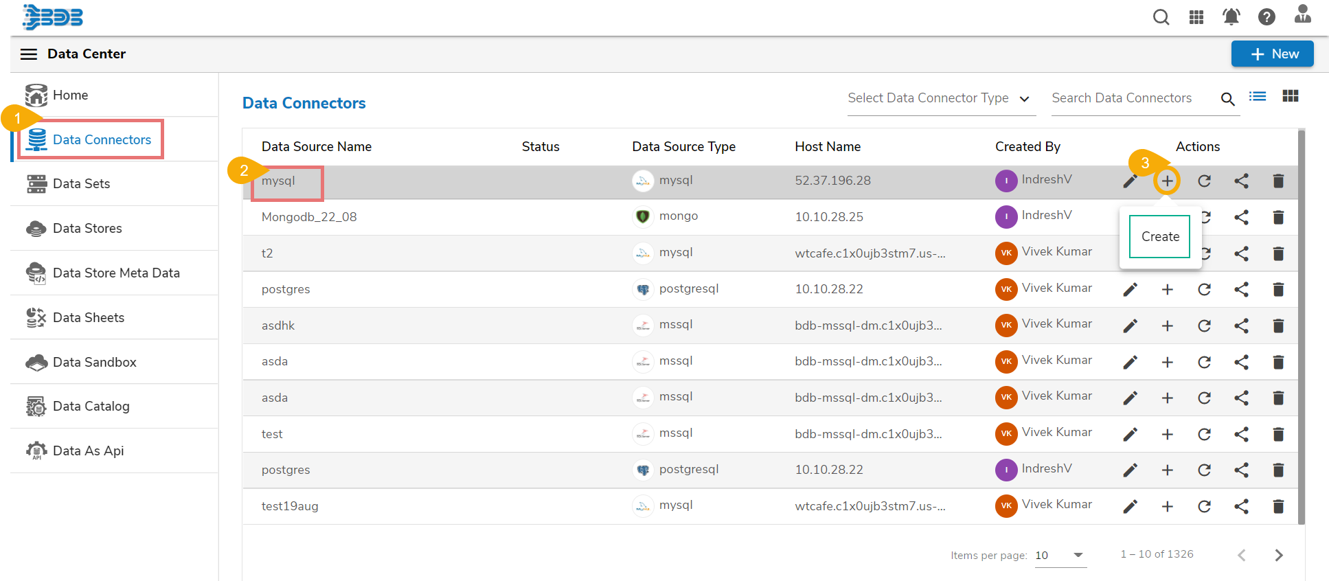 * Click the ***Create*** icon for that Data Connector.