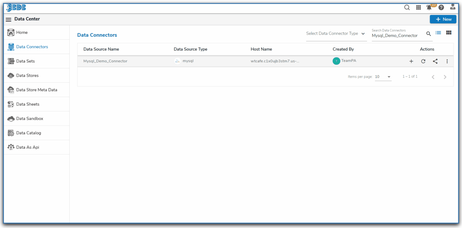 The newly created Data Set gets added to the ‘Data Sets’ List.