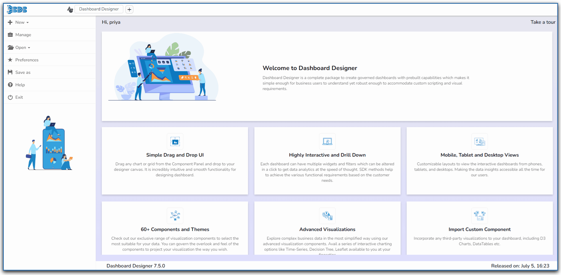 * The user can also use a script for the Dashboard, which can be accessed via the **Components** tab.