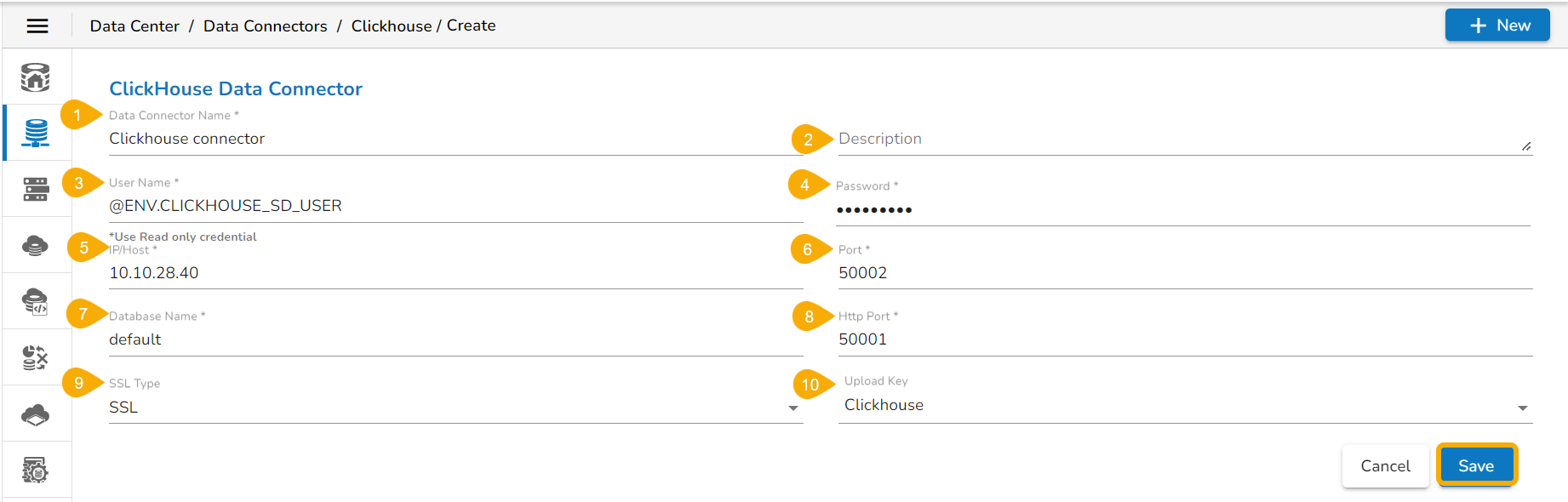 Provide the following information to create a ClickHouse Data Connector: