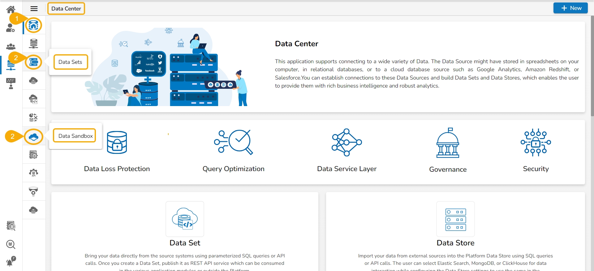 Click the Data Sets or Data Sandbox option from the left side menu panel.