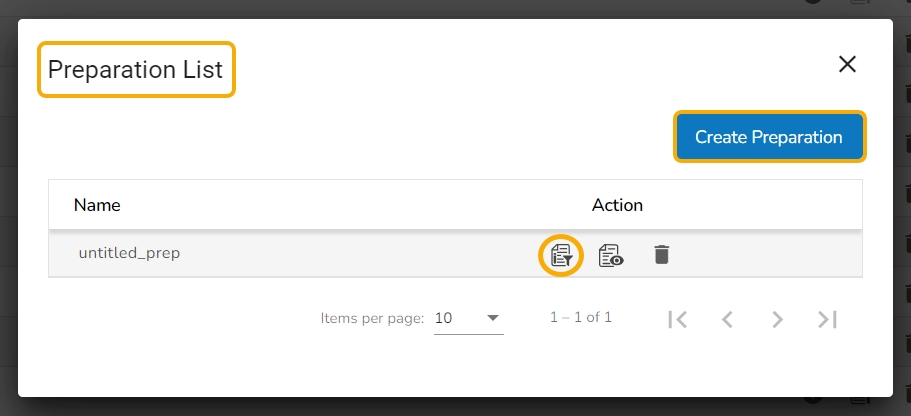 Open an existing Preparation from the list by clicking on the View/Edit icon.