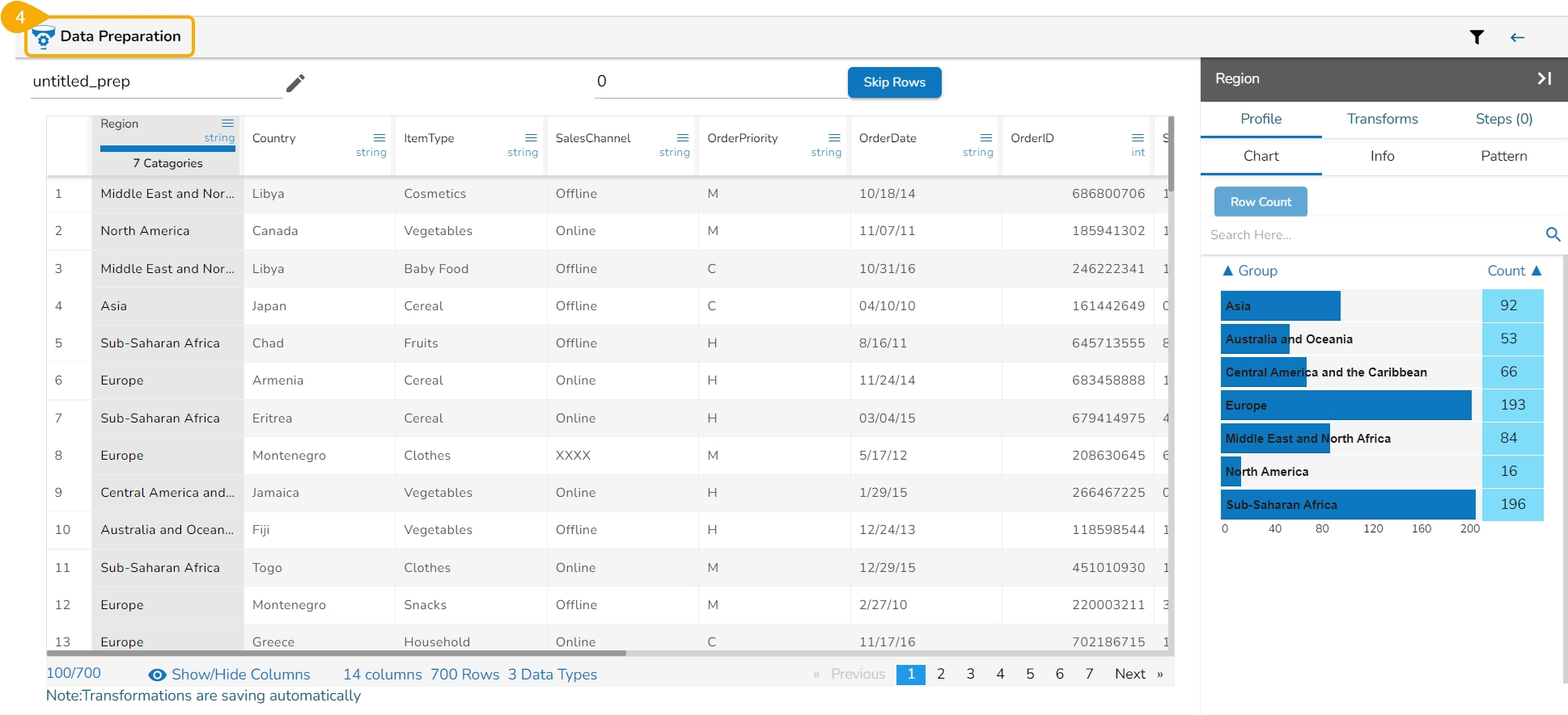The Data Preparation Workspace opens.