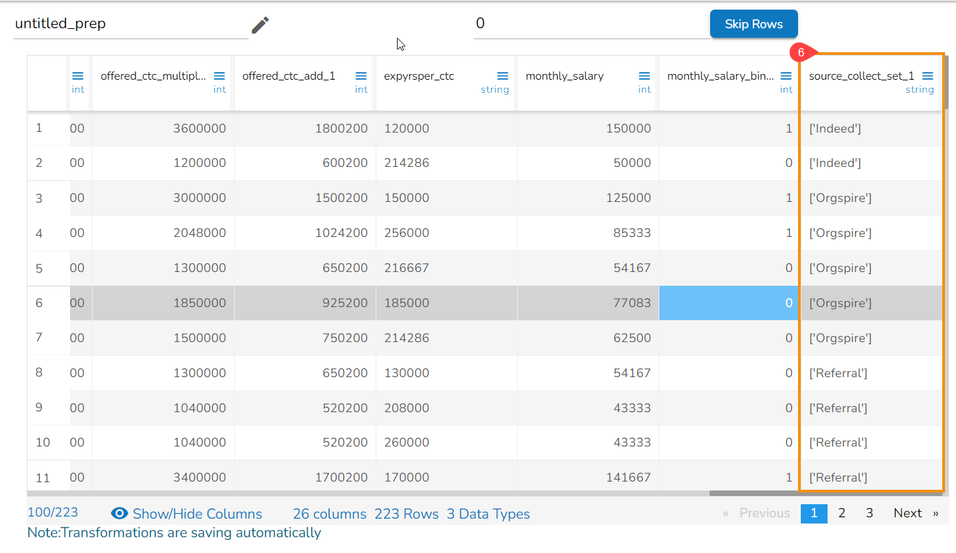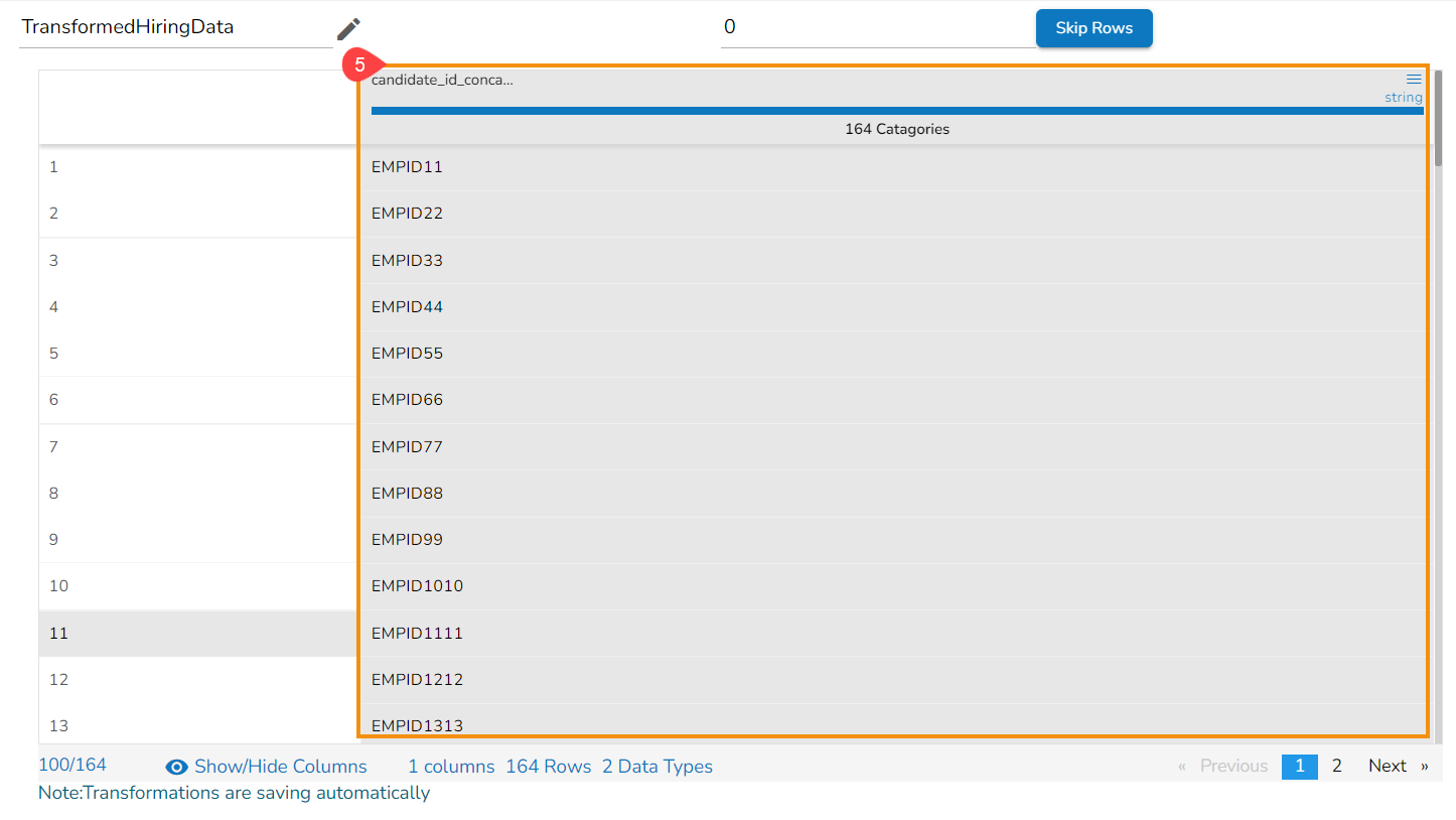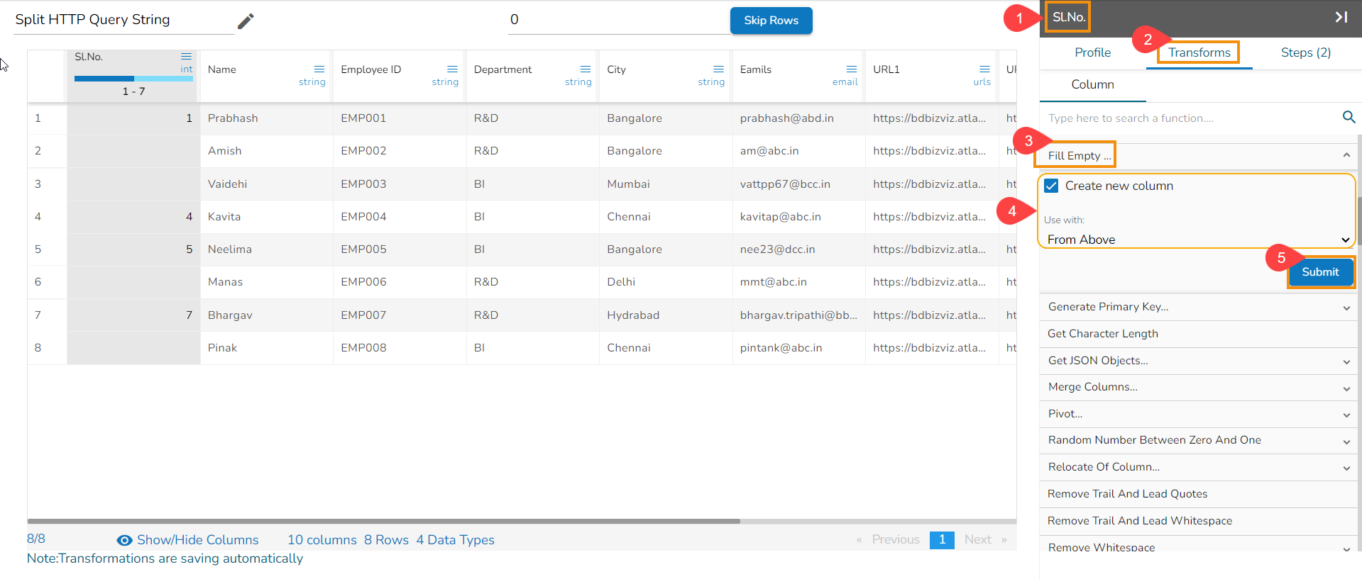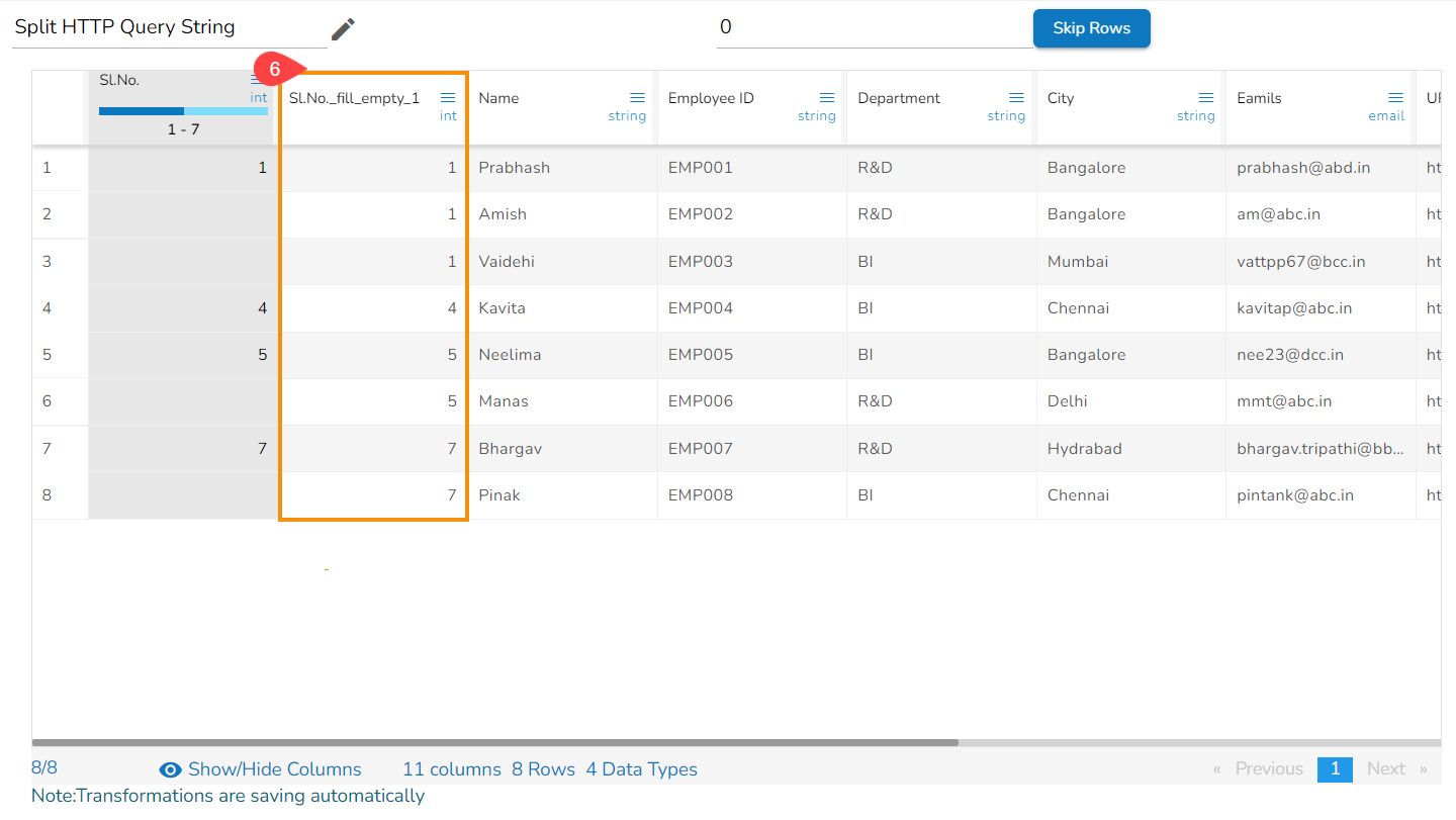 * *The user can update values in this column by using the transforms like **Fill empty**, **Search & Replace**.*