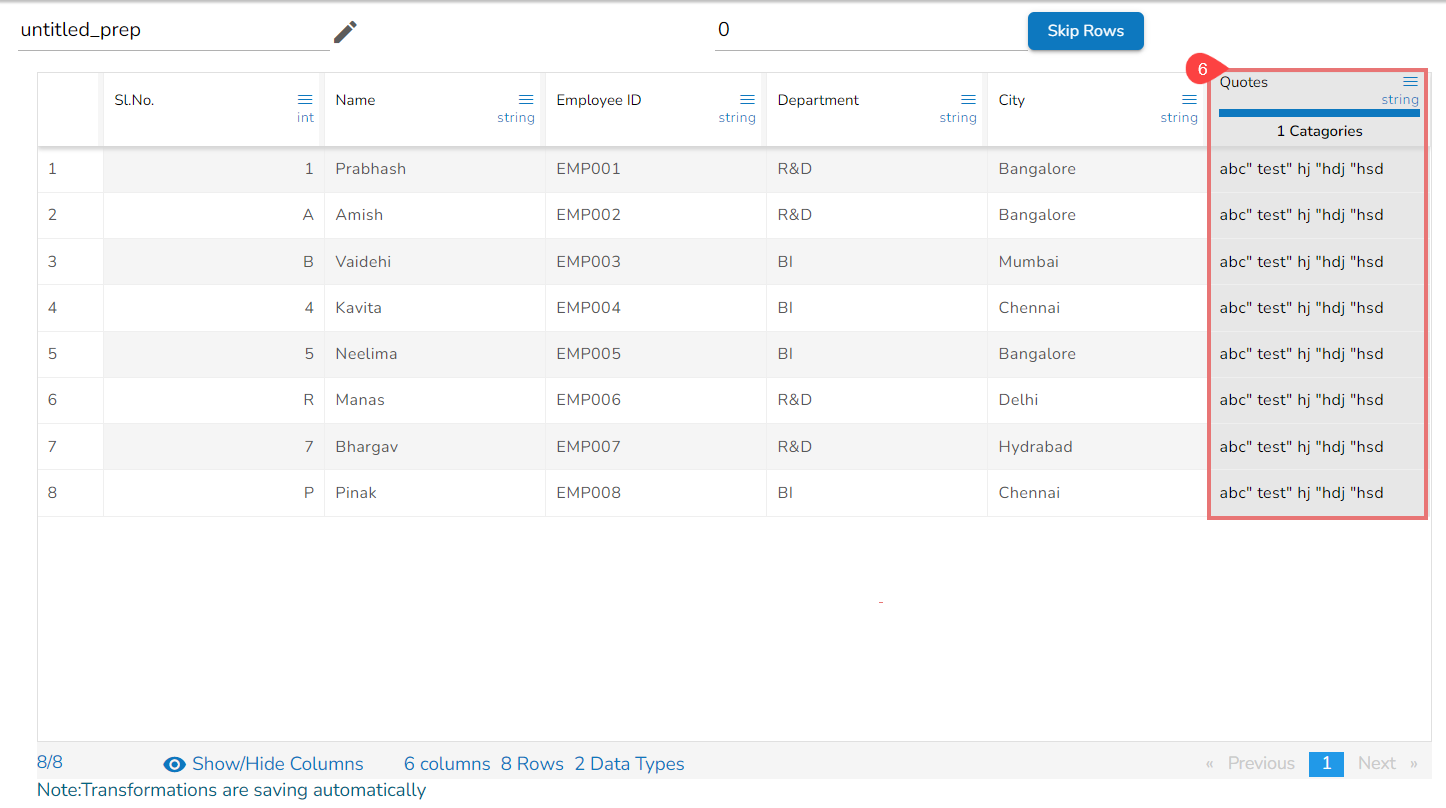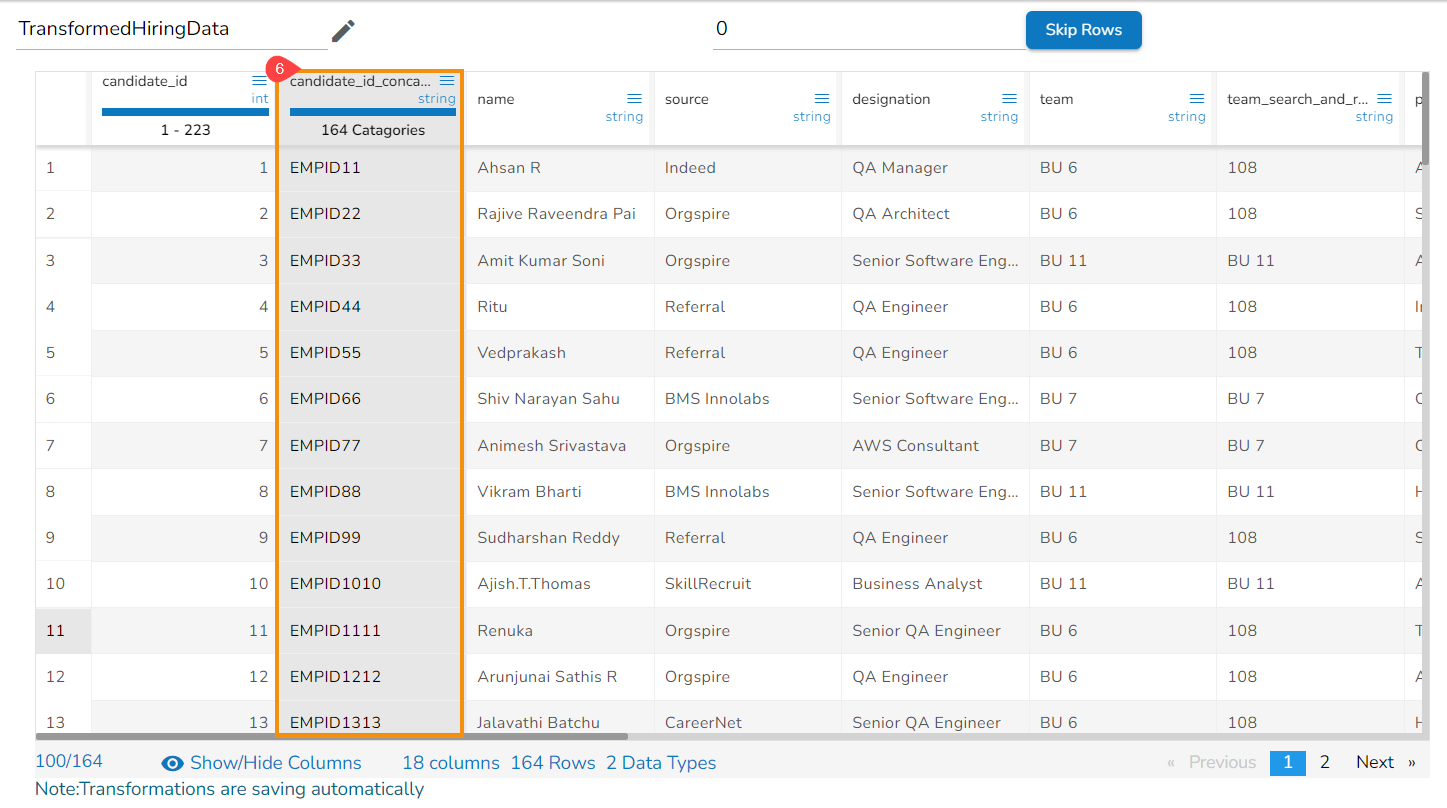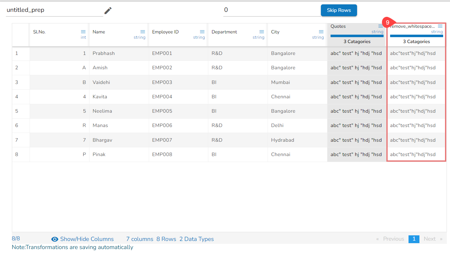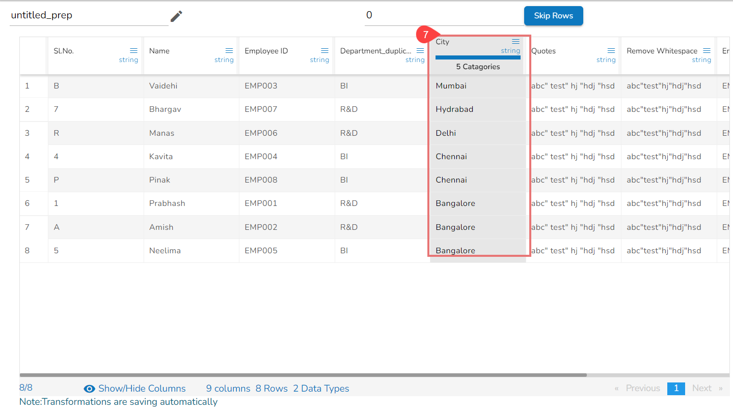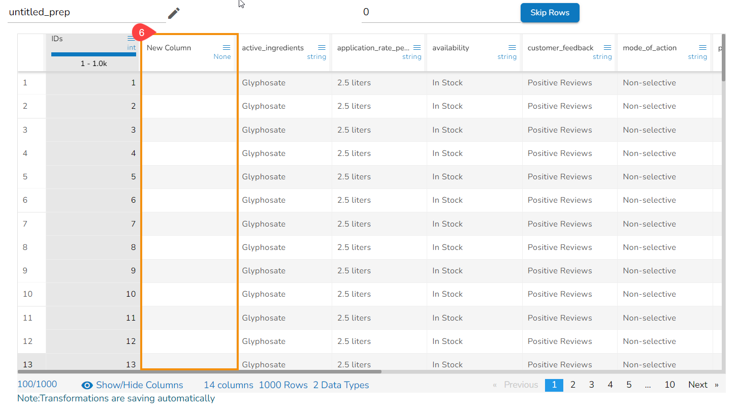 * *The user can update values in this column by using the transforms like **Fill empty**, **Search & Replace**.*