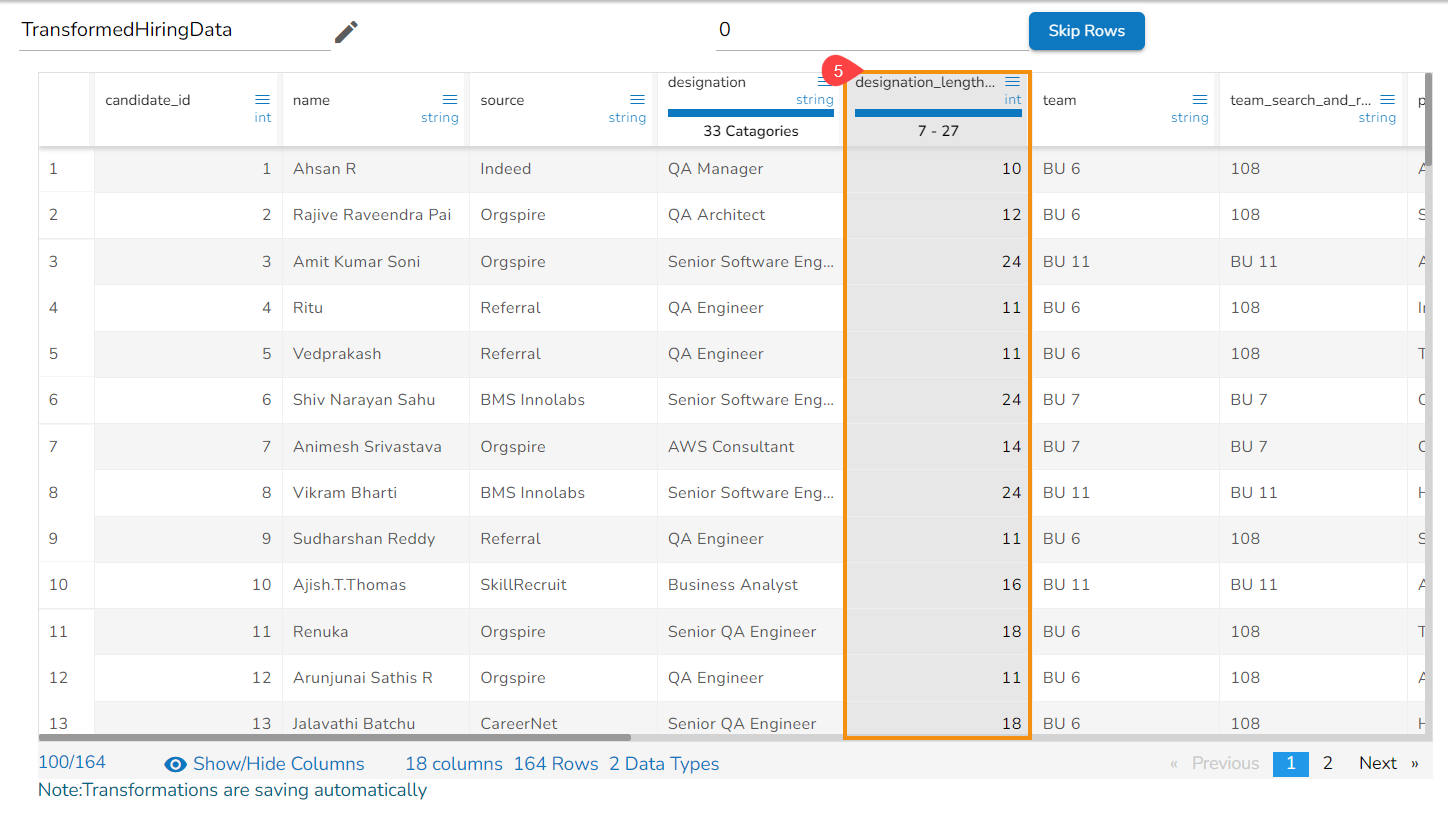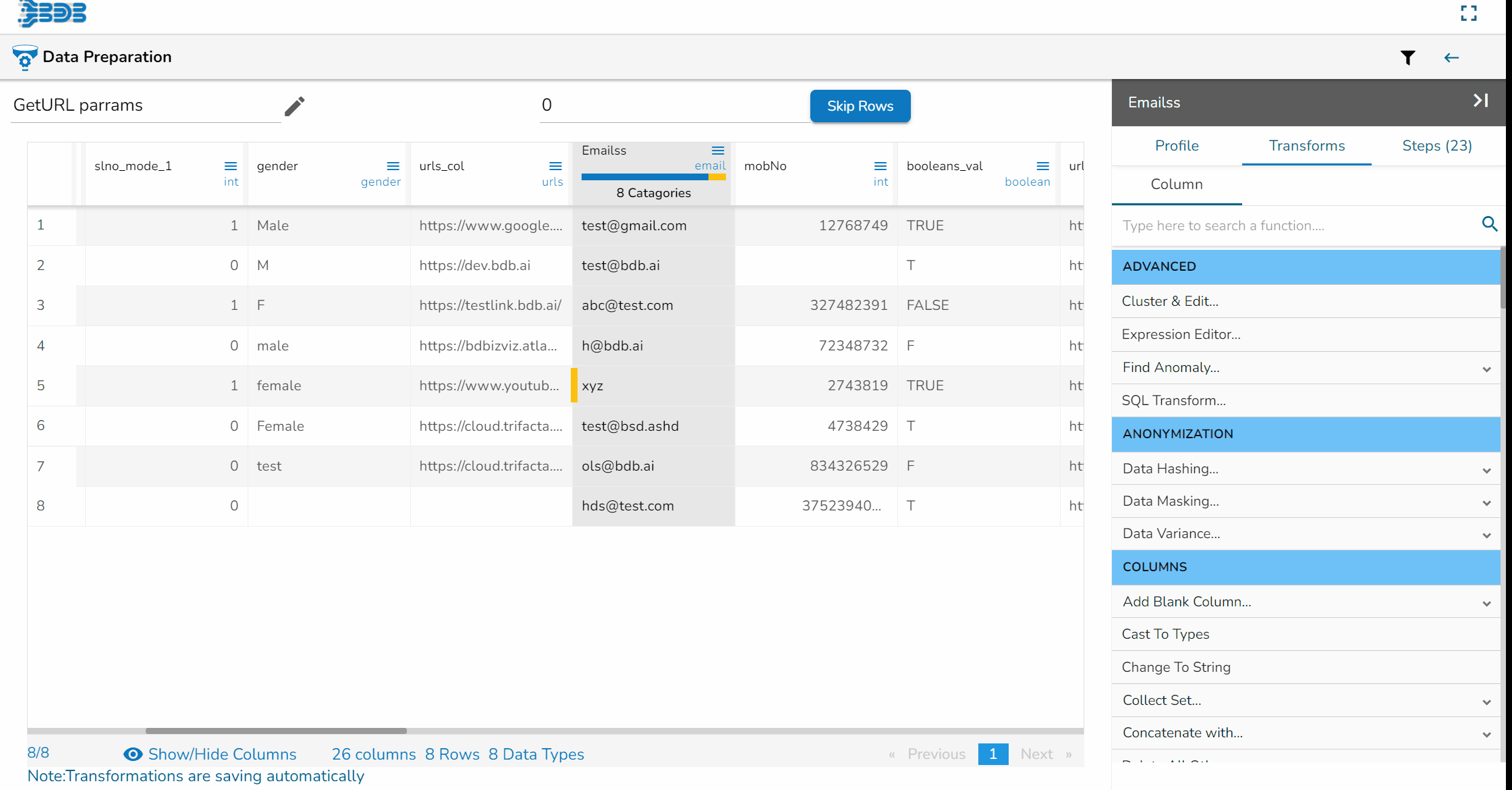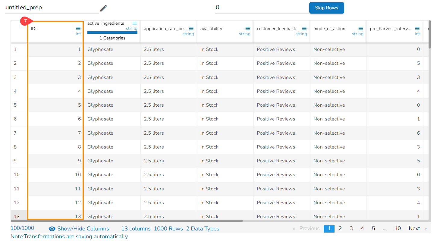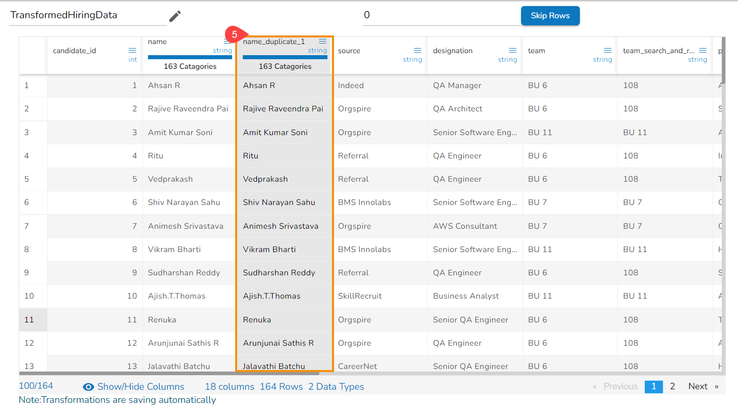 * *The user can update values in this column by using the transforms like **Fill empty**, **Search & Replace**.*
