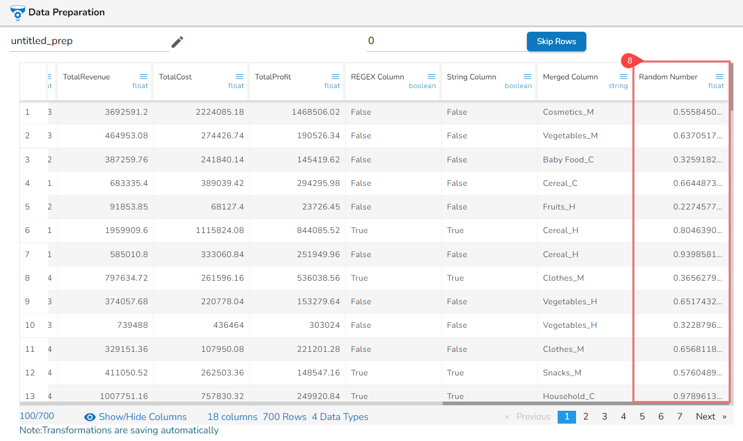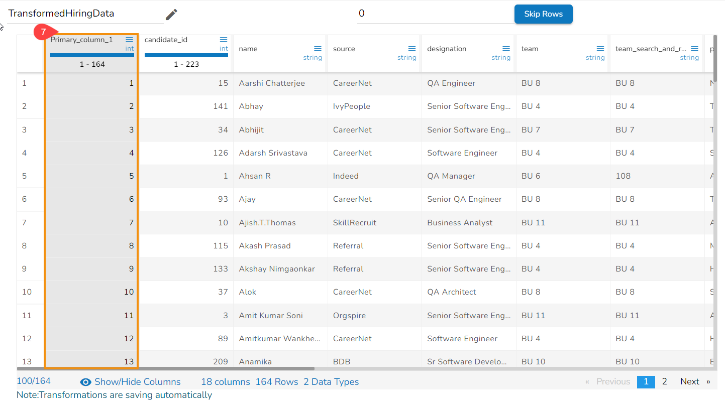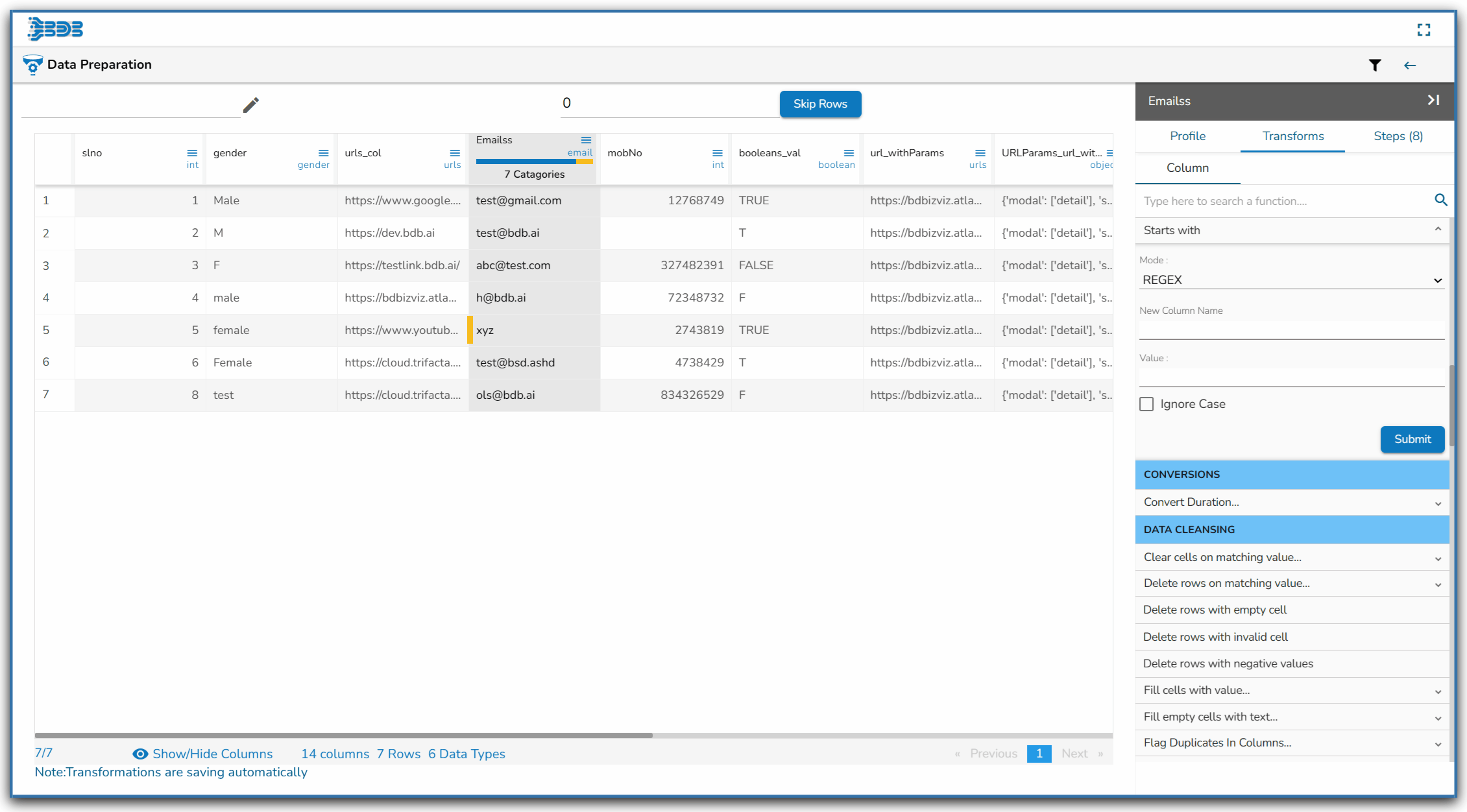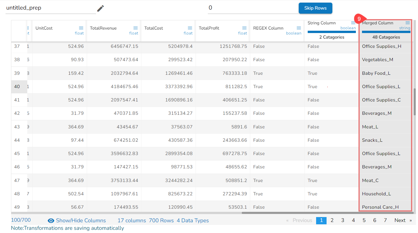 * *The user can update values in this column by using the transforms like **Fill empty**, **Search & Replace**.*